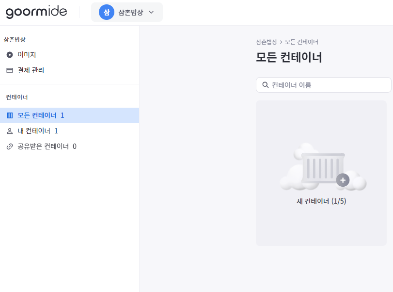 3.새컨테이너를 클릭하고 컨테이너를 생성해주세요