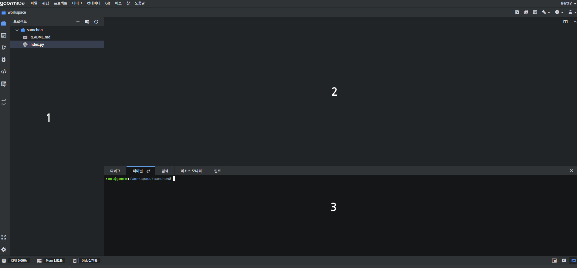 1 . 구름 IDE 접속하기 https://ide.goorm.io 에 접속합니다.