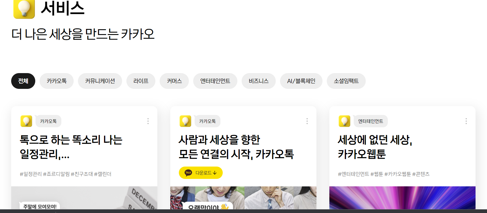 카카오 공식 홈페이지에 방문합니다. https://www.kakaocorp.com/page/