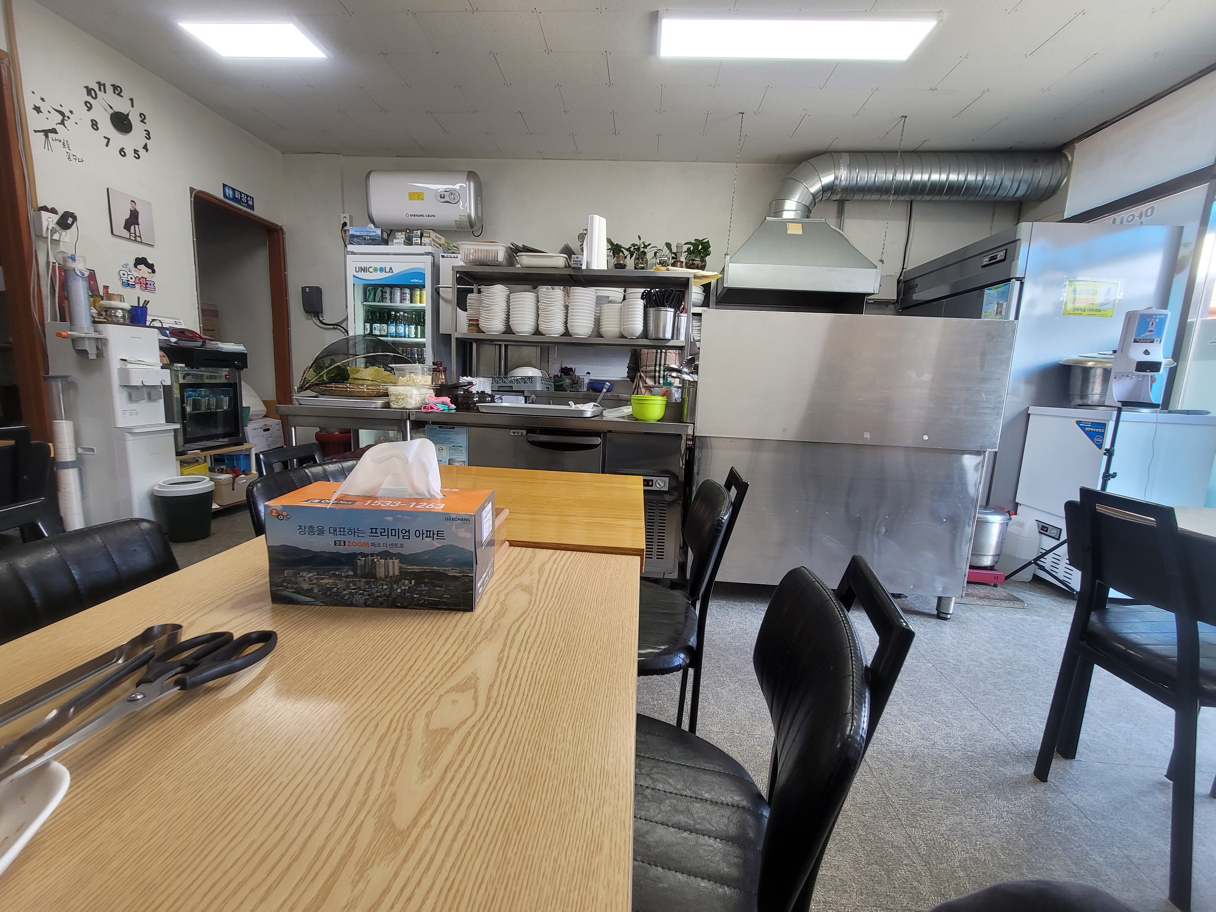 식당은 큰편은 아닌데요 밖에 테이블과 안쪽에 앉아서 먹을수 있는공간이 있습니다.