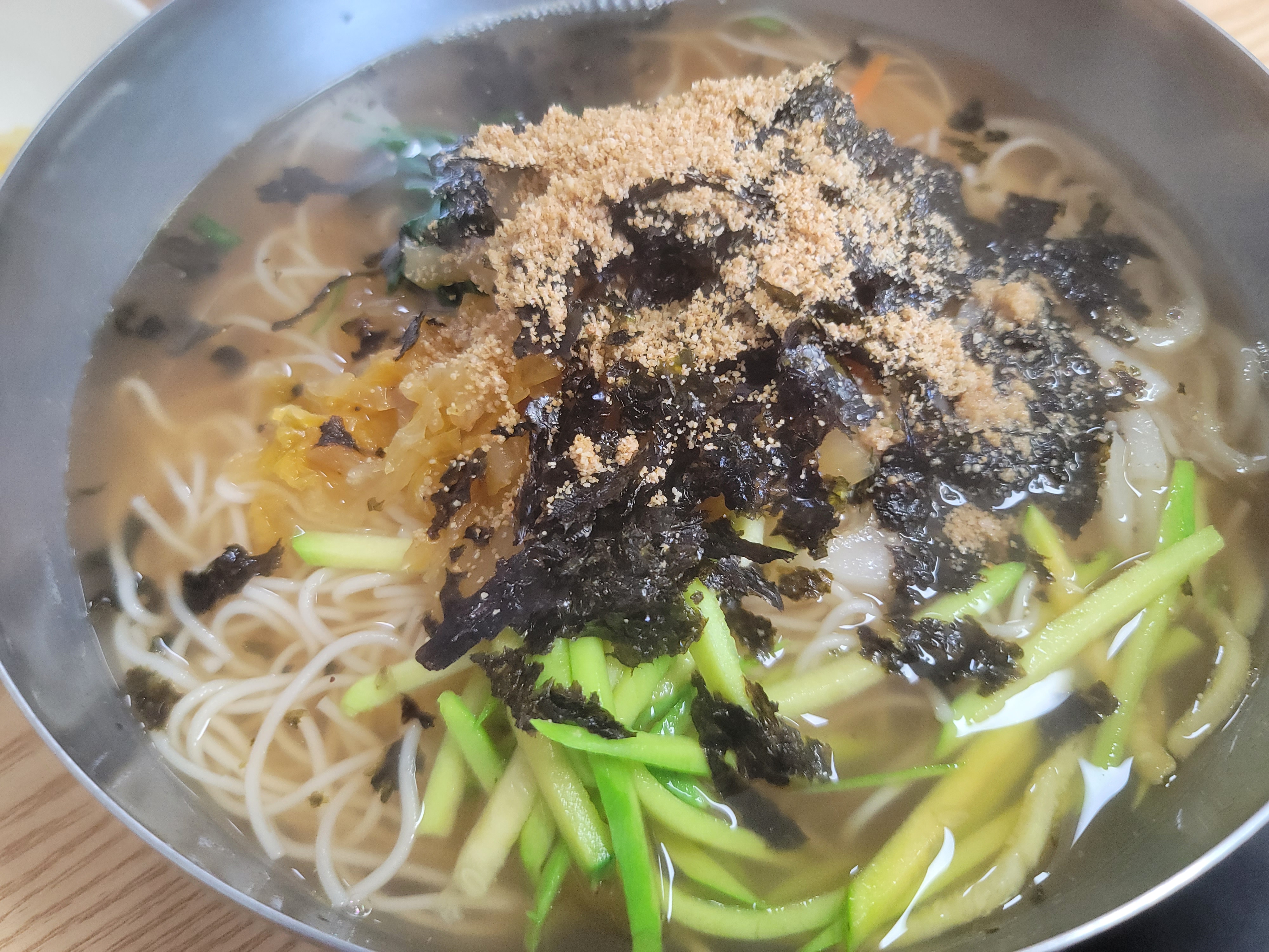 다른곳에서 잔치국수를 먹으면 김치들어간 정도가 전부이지만 여기는 부추 .애호박 . 들깨가루등 다양하니 좋답니다