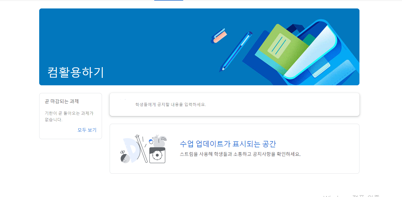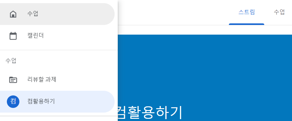 그걸 클릭하시면 구글에서 제공하는 클래스룸 메뉴가 나옵니다.