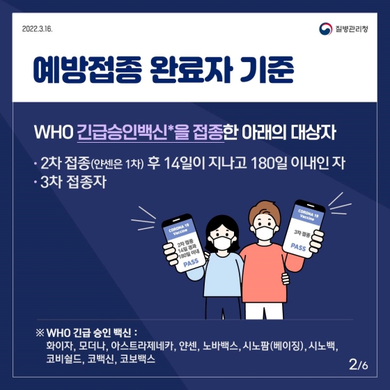 3월21일부터는 WHO 긴급 승인 백신을 접종한 접종완료 해외입국자 격리 면제가 된다고 합니다.