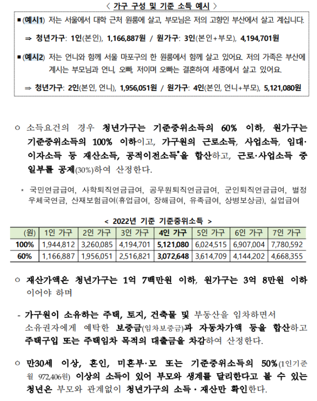 * 원가구 : 청년 가구+1촌 이내 직계 혈족