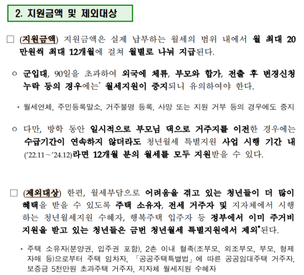 - 청년 가구 : 기준 중위소득 60% 이하 (1인 가구 기준 116만 원/월)