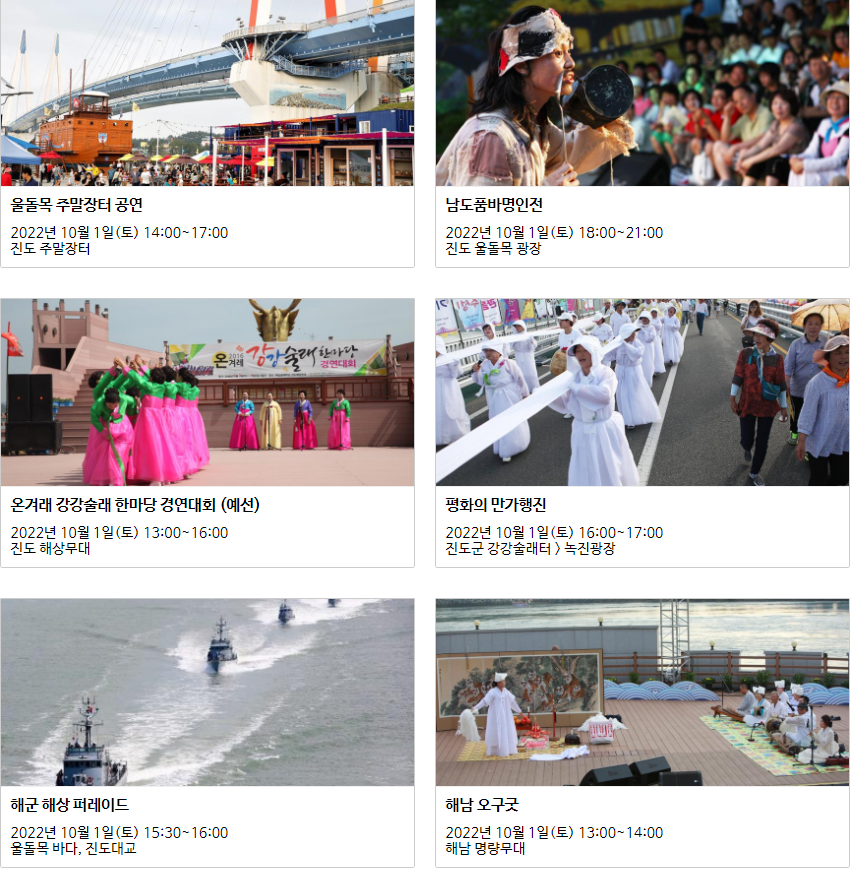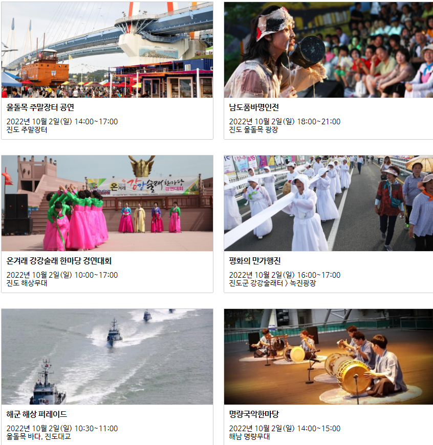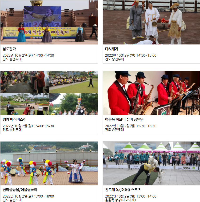 | 14:00 ~ 14:30 | 토요민속여행 (진도군립 민속예술단) |
