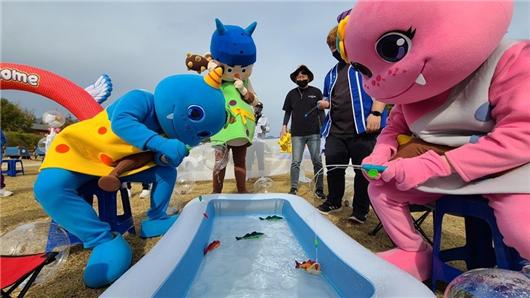 [잔디광장]에서는 낚싯대를 이용하여 장난감 물고기와 페트병을 낚는 어린이 어부왕 선발대회가 진행이 된다니다