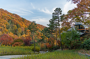 400여 종의 여러가지 단풍나무들이 어우러져 붉은 빛을 자아내고