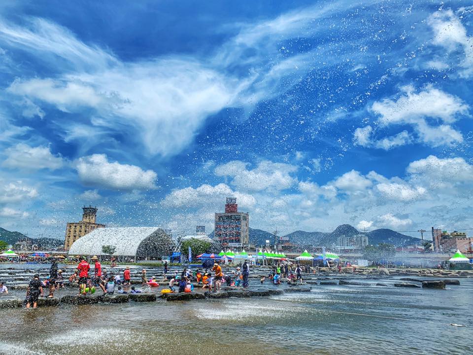 지역주민과 관광객이 함께하는 물싸움 거리 퍼레이드
