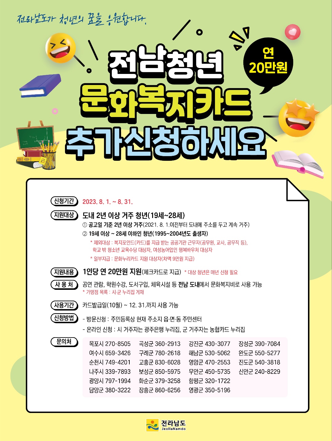 전남청년 문화복지카드 추가신청하세요