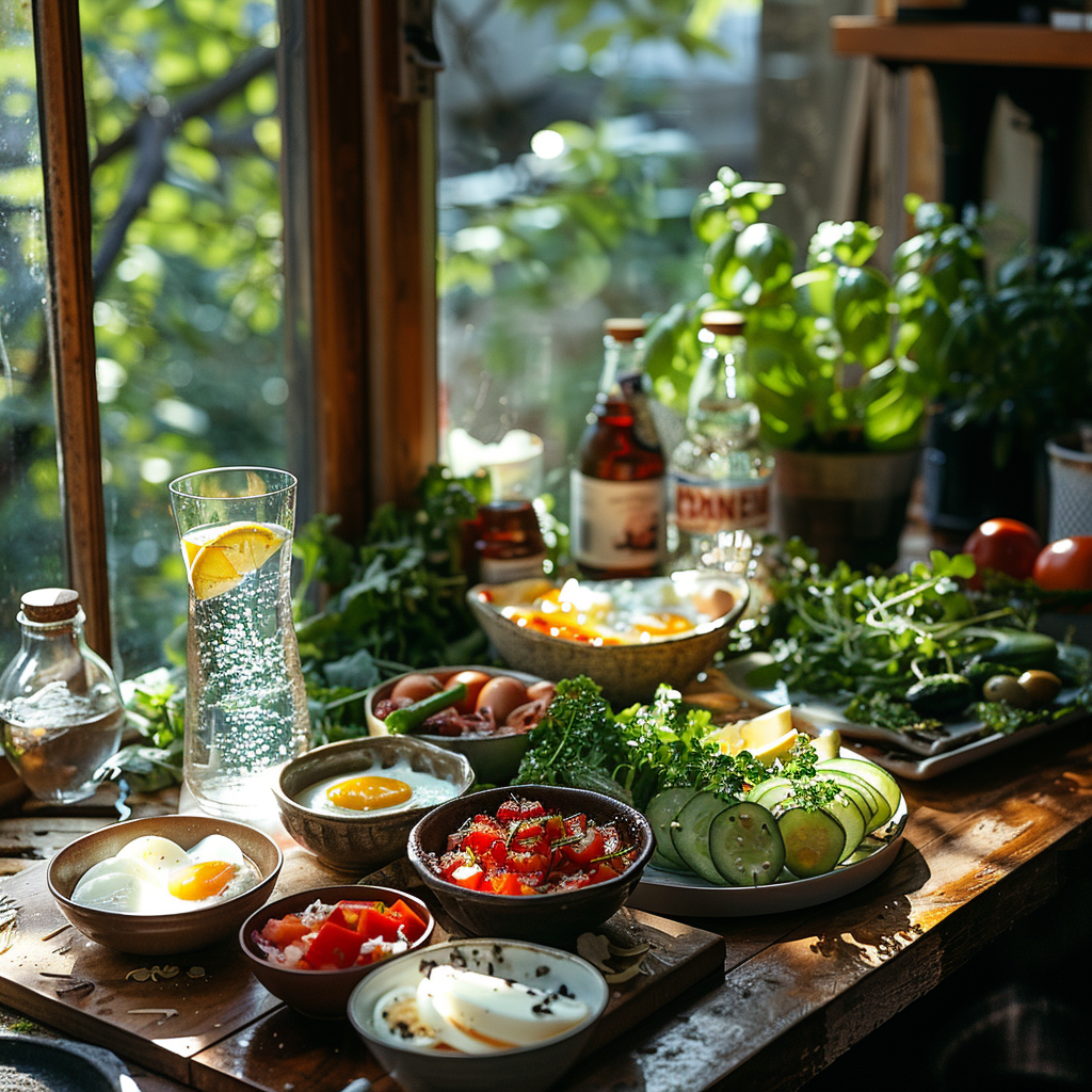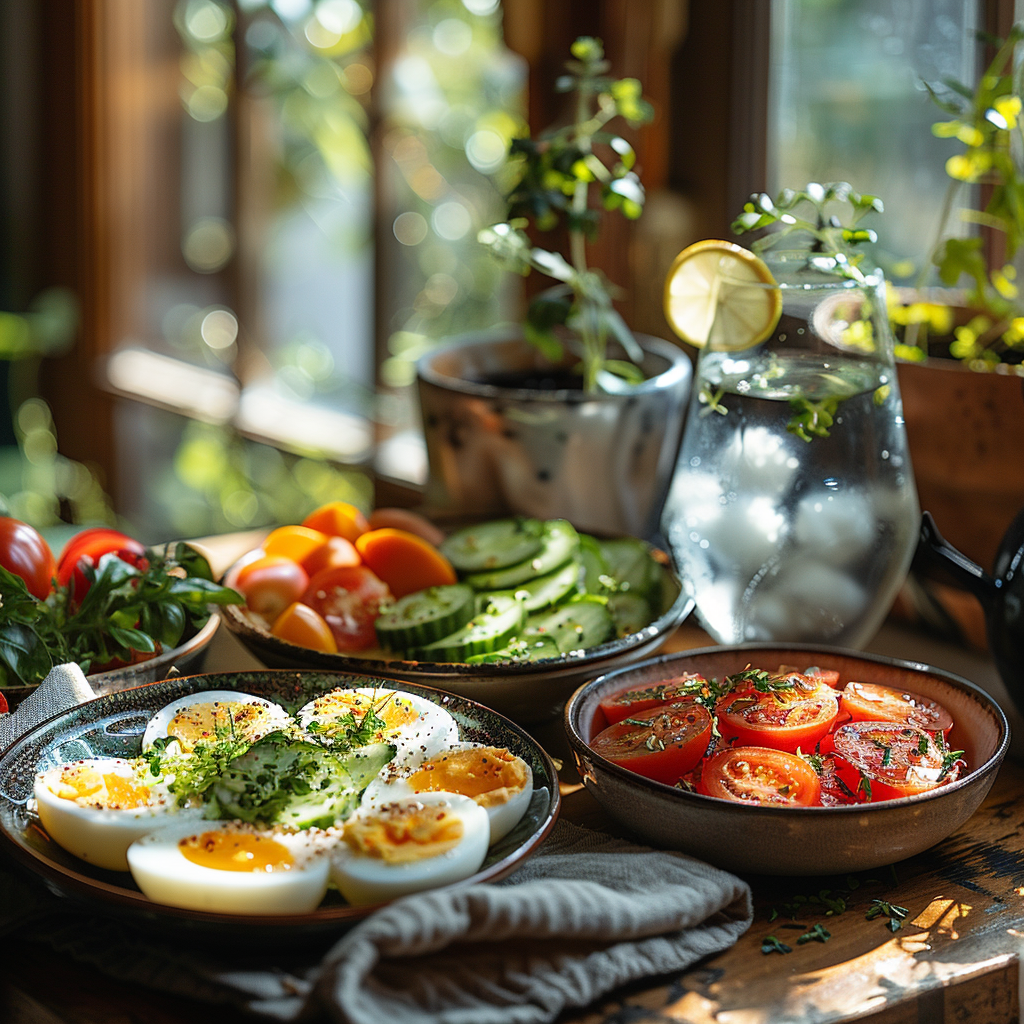 식사 전, 삶은 계란이나 오이 같은 단백질 또는 식초를 먼저 먹는 것도 혈당 스파이크를 완화하는 데 큰 도움이 됩니다. 저는 아침에 식초 한 스푼을 물에 타서 마시는 습관을 들였는데, 뱃살 빼는데 효과가 꽤 좋더라고요!
