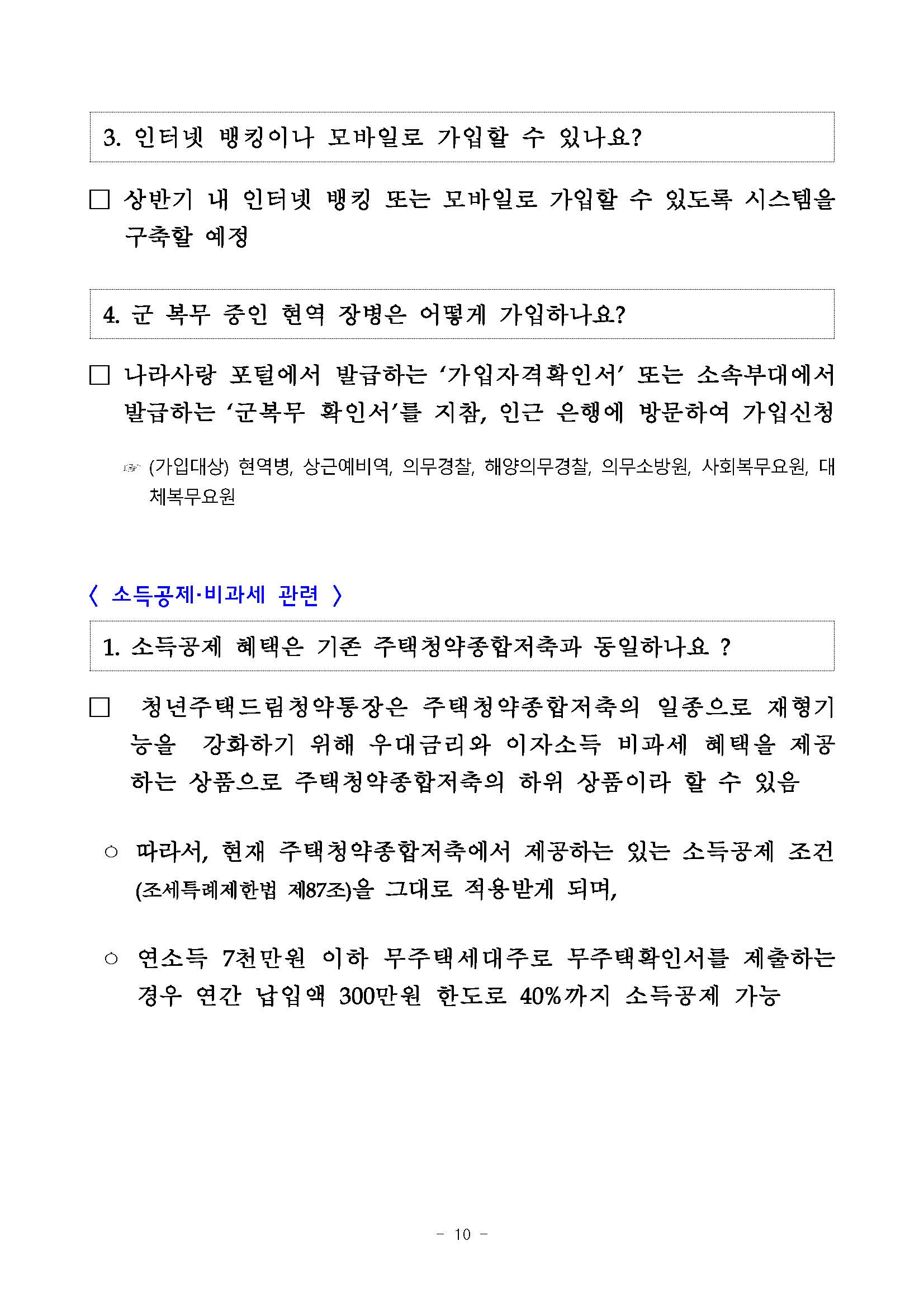 1. 소득공제 혜택은 기존 주택청약종합저축과 동일하나요 ?