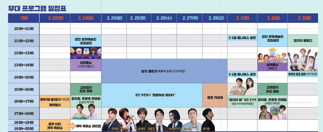 🎤 강진청자축제 특별공연 일정 및 출연 가수 (표 형식)