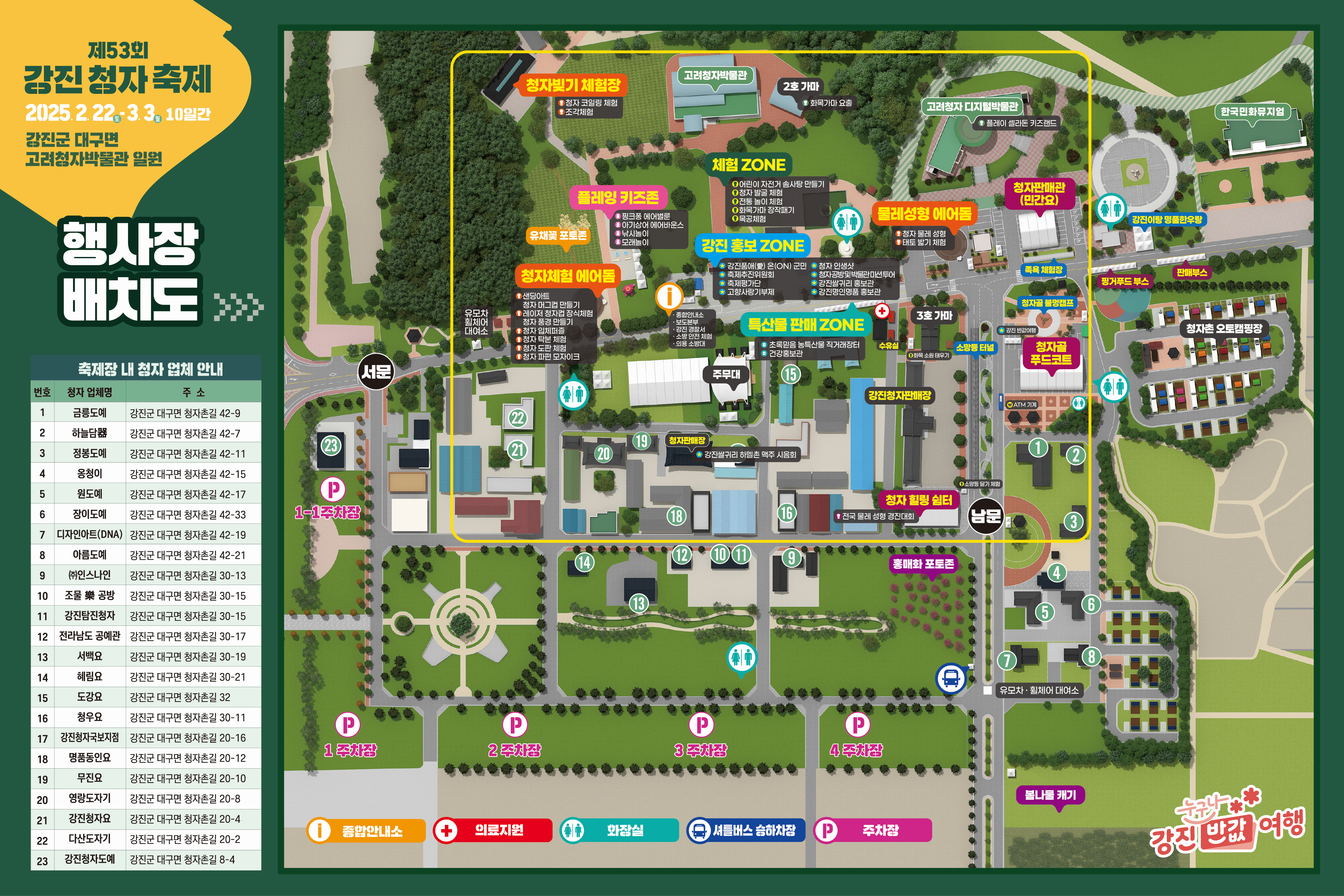 문화유산을 체험하고, 다양한 공연과 이벤트를 즐길 수 있는 제53회 강진청자축제! 이번 기회에 소중한 사람들과 함께 특별한 추억을 만들어보세요. 행사장 내 다양한 먹거리와 체험 부스도 마련되어 있어 하루 종일 즐겁게 보낼 수 있습니다.