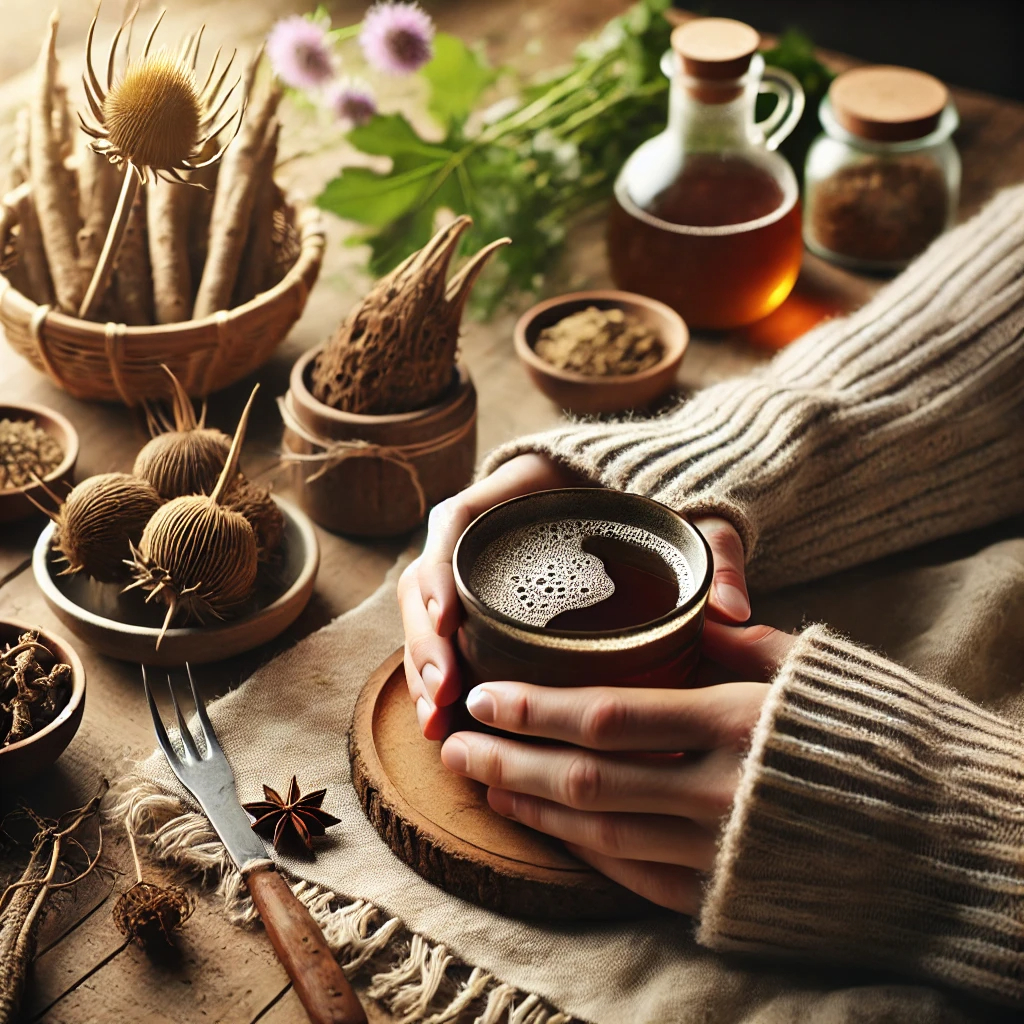우엉차에는 천연 이뇨 작용을 돕는 성분이 들어 있어요.