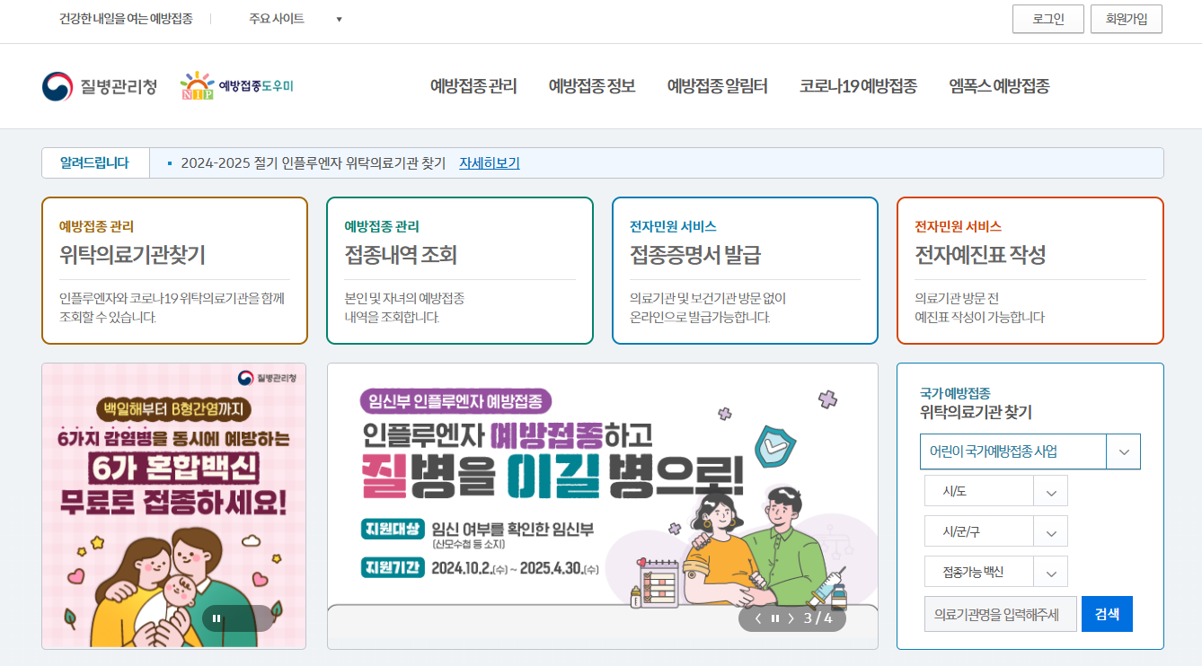 질병관리청 예방접종도우미 공식 홈페이지 방문