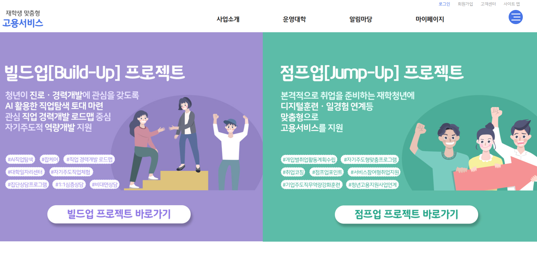 대학 재학생 맞춤형 고용서비스 상담 기반, 두 가지 프로젝트 운영