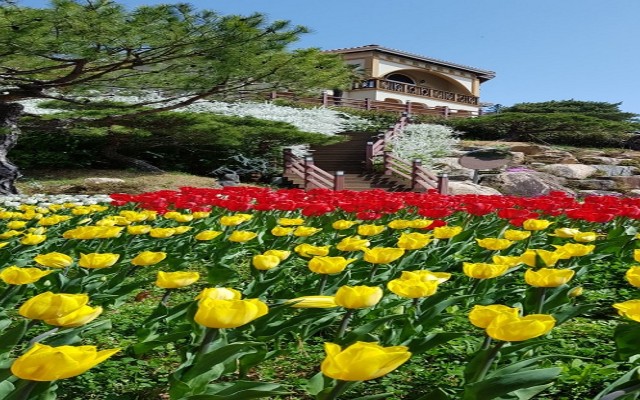 하늘빛수목정원은 봄마다 알록달록한 튤립으로 물들어요. 약 2만여 평의 넓은 대지에 펼쳐진 형형색색의 튤립은 마치 유럽의 어느 정원에 온 듯한 착각을 불러일으키죠.
