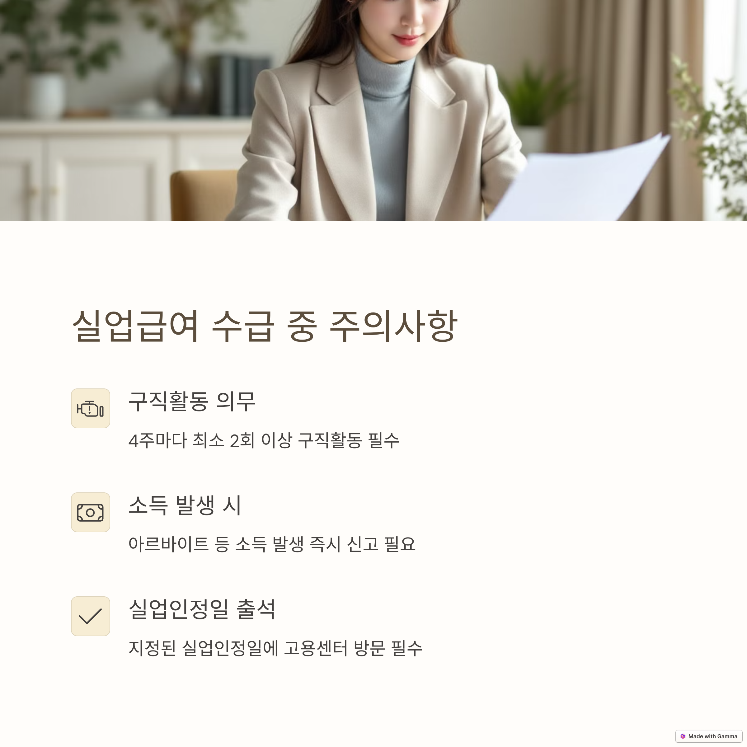 - 구직활동 증빙 없이 수급 → 지급 중단 가능성 있음