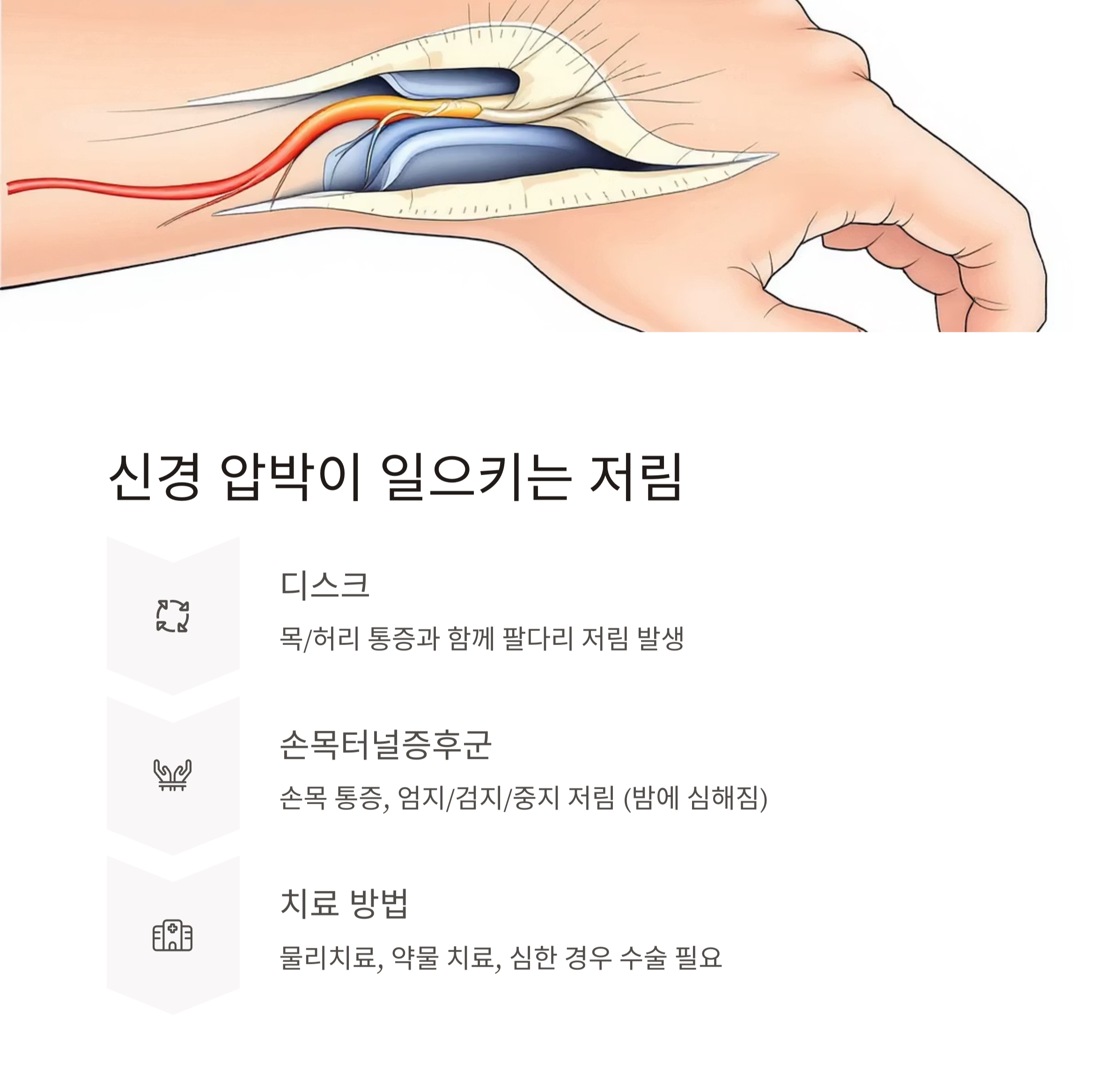 신경 압박에 의한 손발 저림 - 디스크와 손목 증후군