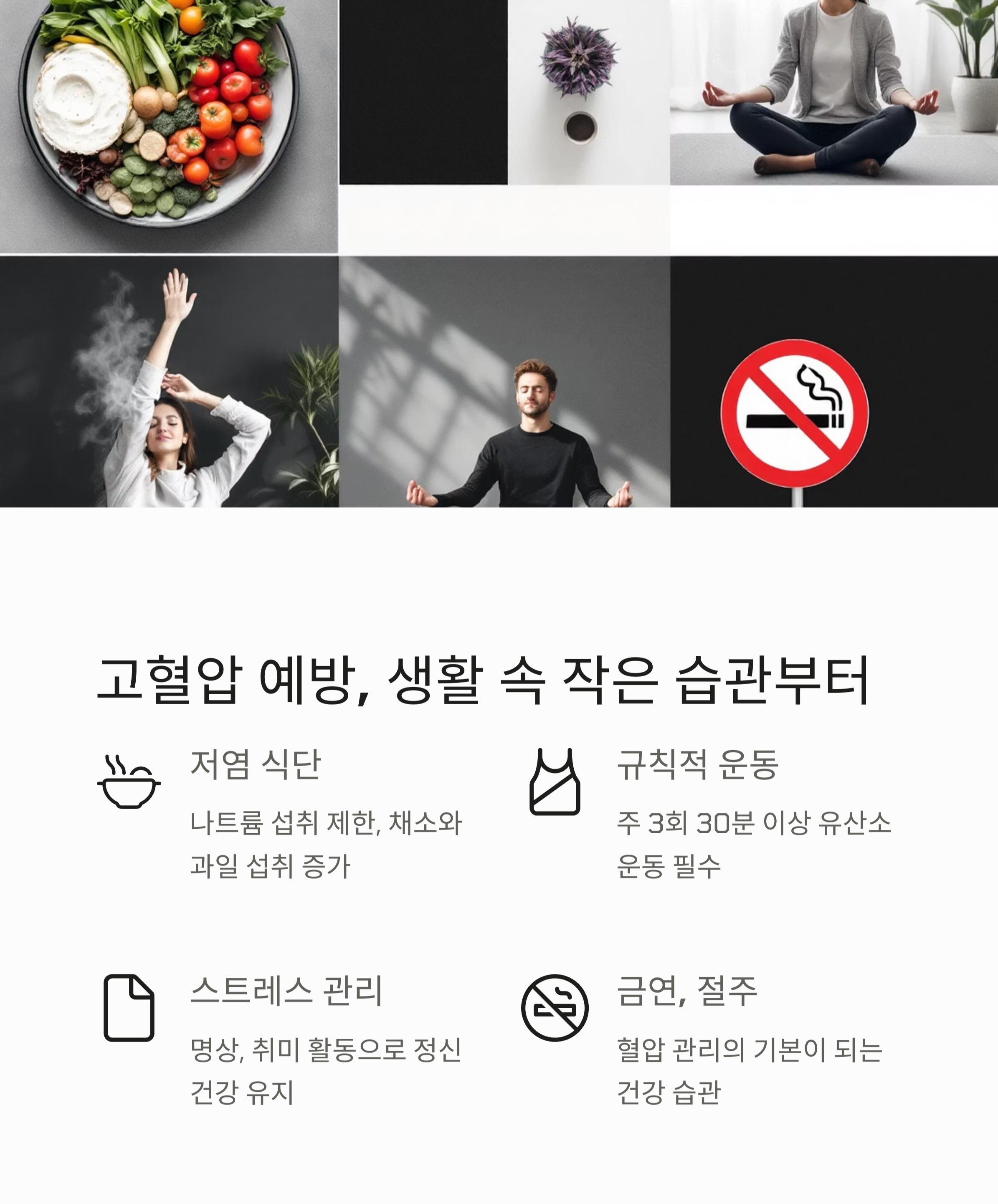 고혈압을 예방하려면 복잡하거나 어려운 방법보다 작은 습관부터 실천하는 게 중요해요.