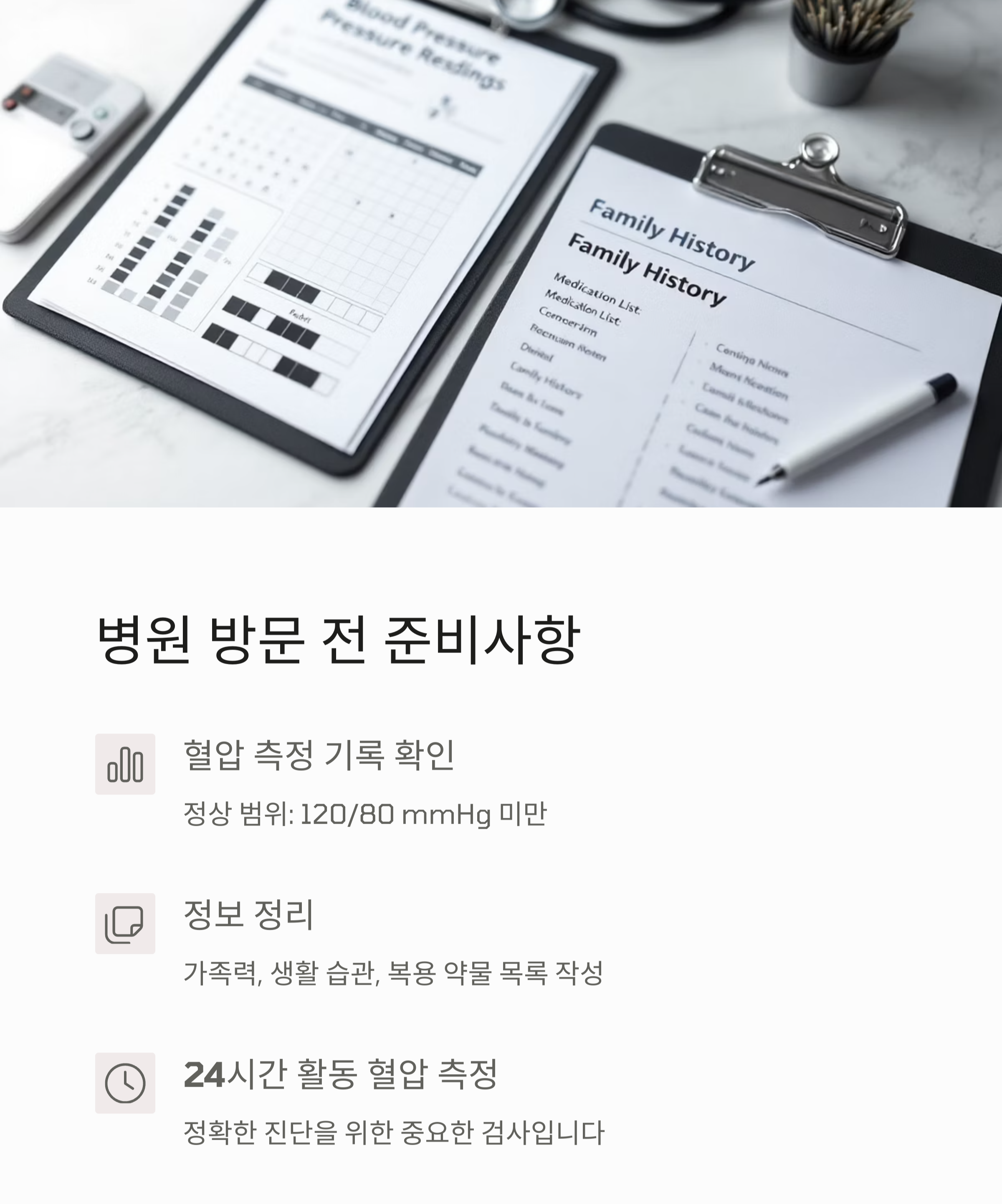 고혈압은 평생 관리해야 하는 질환이기 때문에, 지속적인 혈압 측정과 기록이 정말 중요해요.