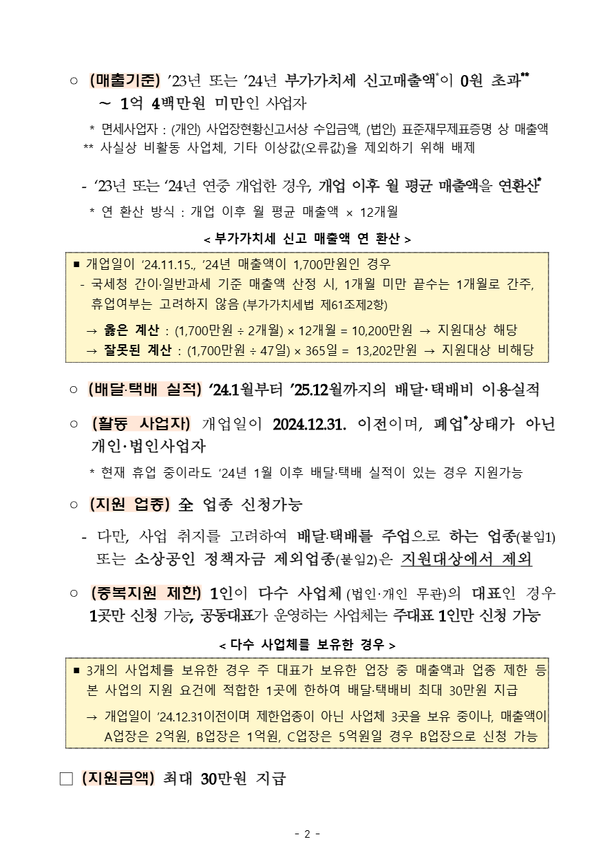 - 매출이 높은 곳이 아닌, 매출 요건을 충족하는 1곳만 신청 대상