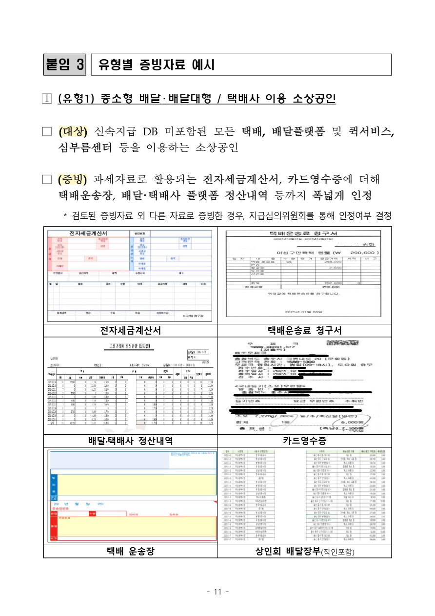- 택배비 영수증, 정산내역 등 증빙자료가 필요한 경우