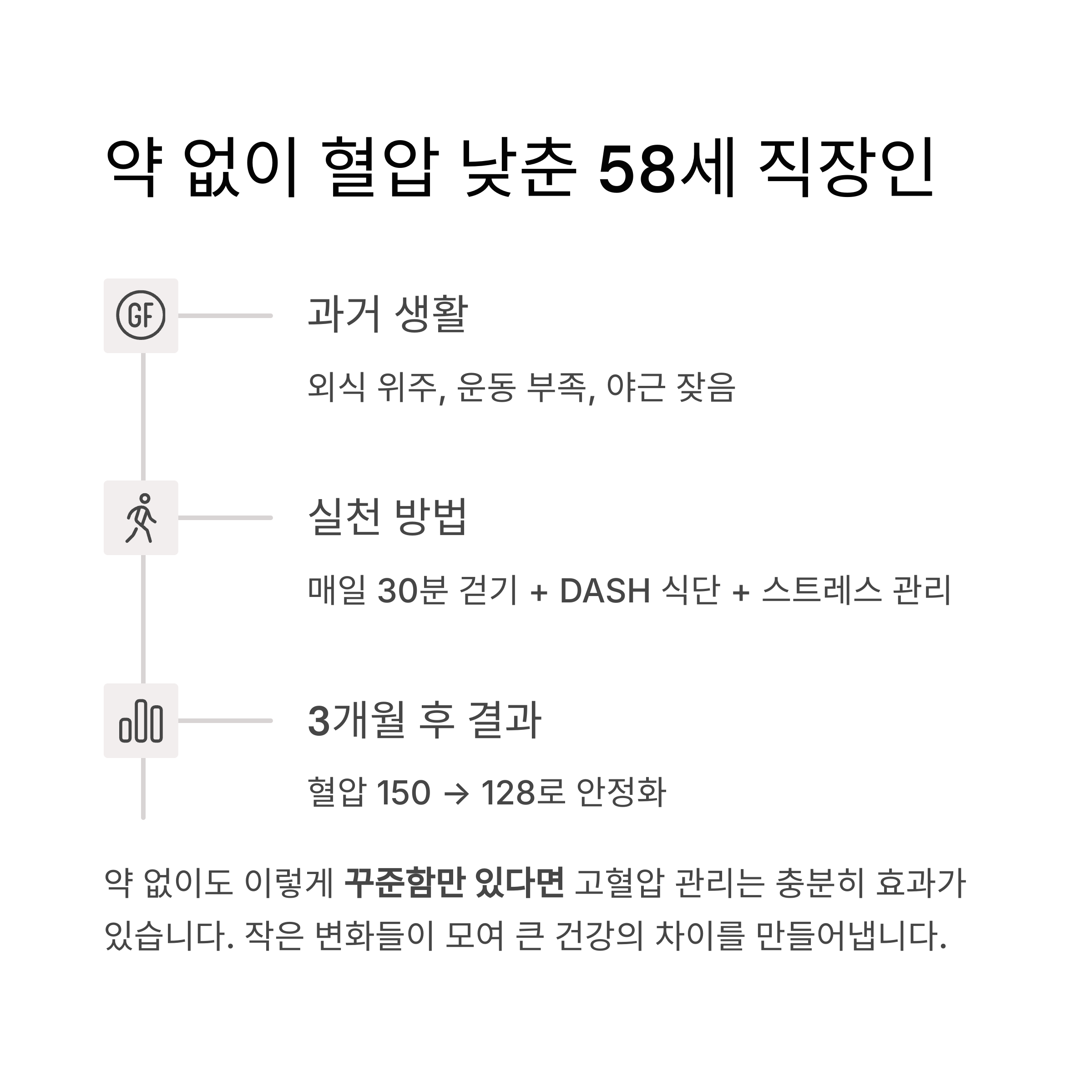 - 결과: 3개월 후 혈압 150 → 128로 안정화