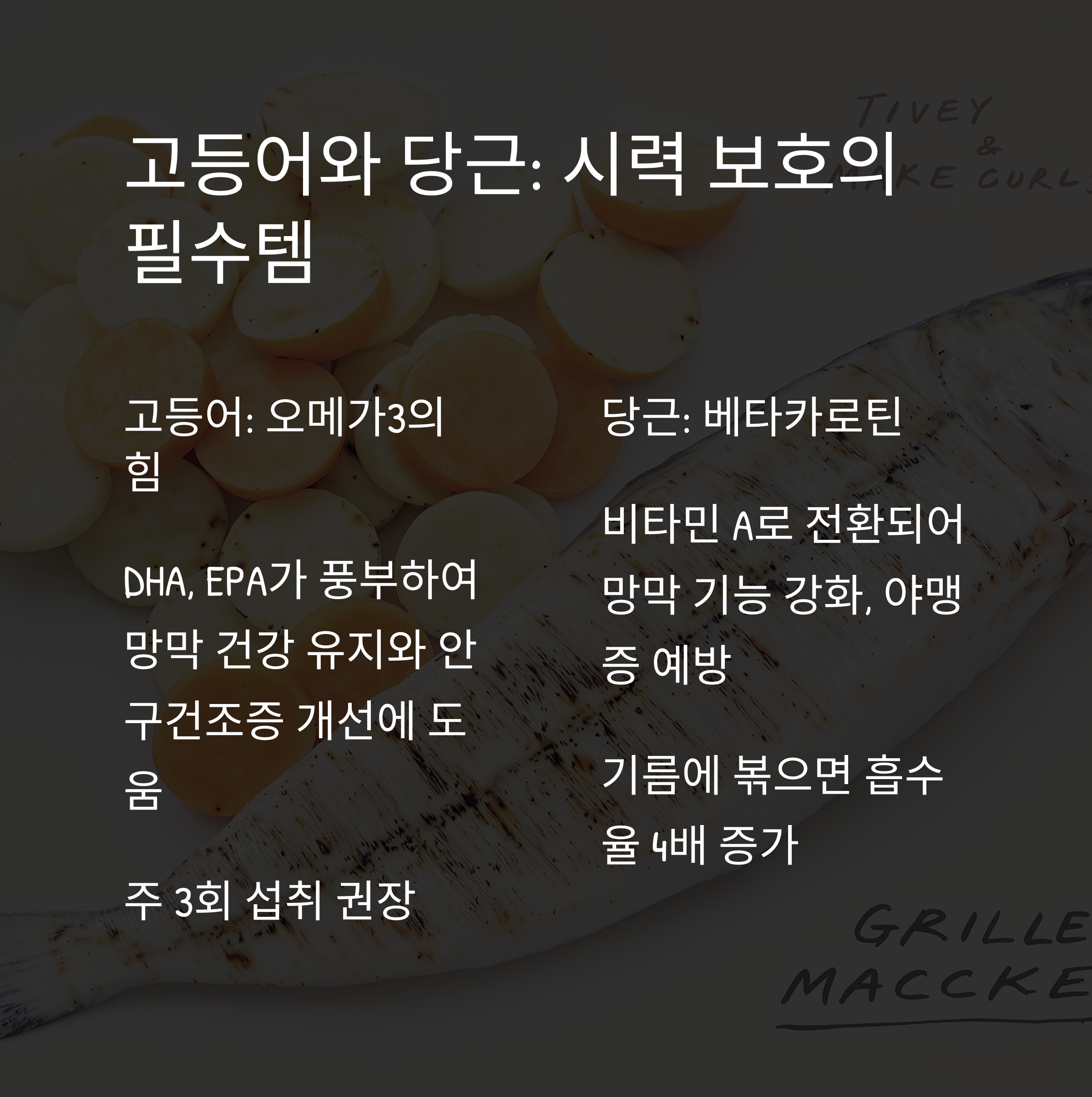 주 3회 고등어 섭취를 꾸준히 하며 눈 건강을 되찾았습니다.