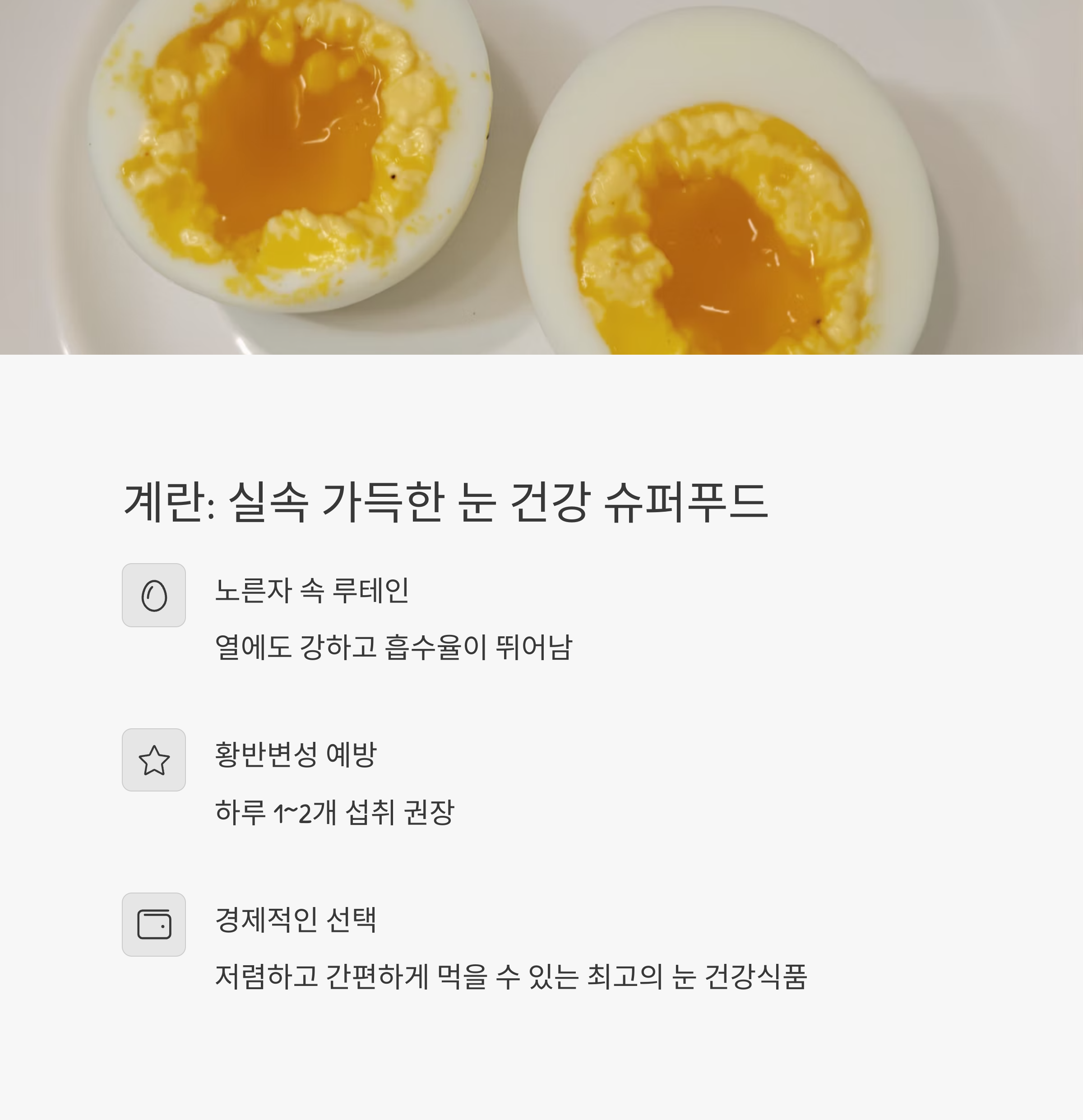 계란은 저렴하고 간편하게 먹을 수 있는 최고의 눈 건강식품입니다.