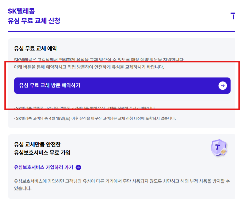 SK 유심 보호서비스 신청 및 예약