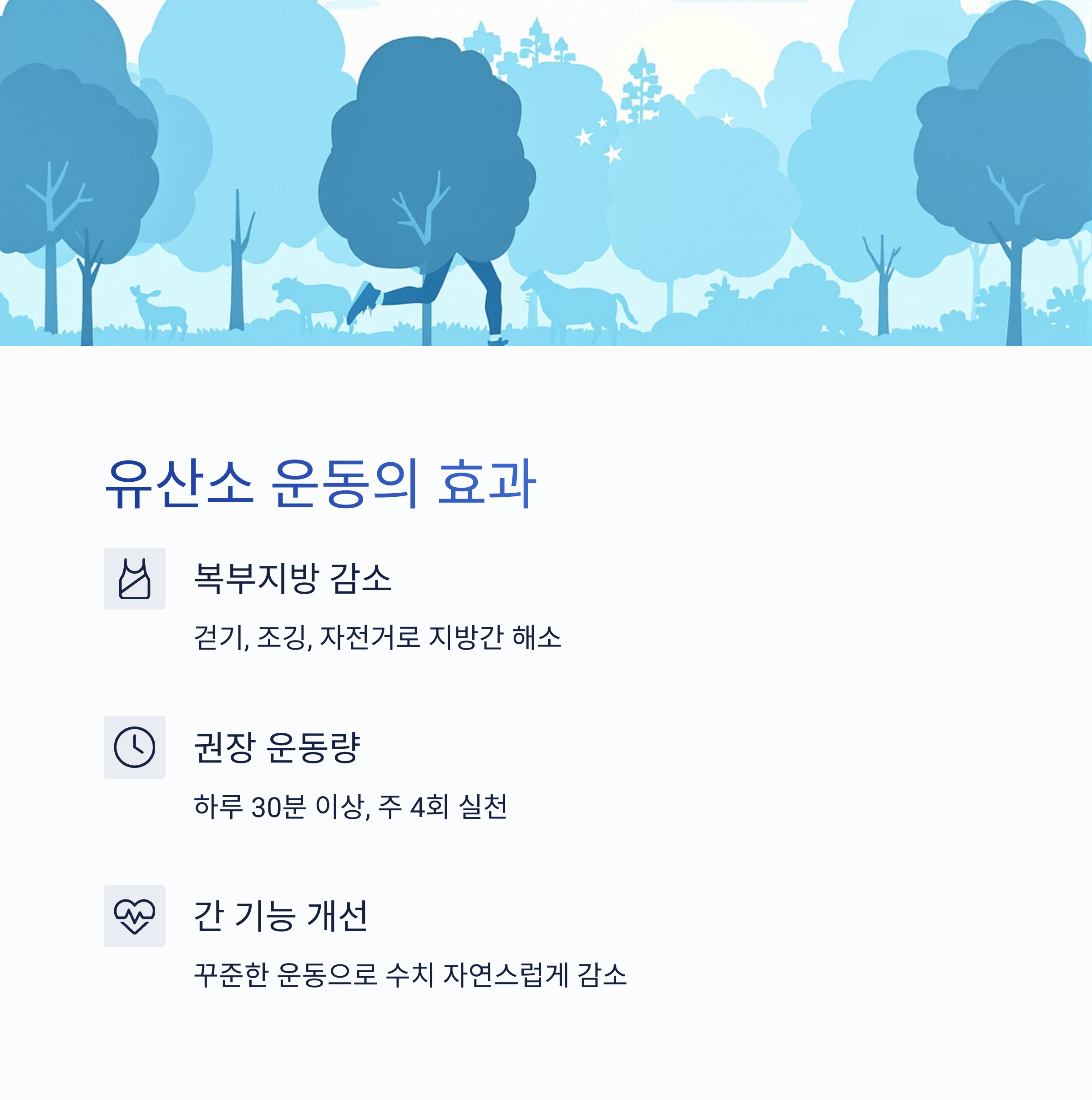 하루 30분 이상, 주 4회 운동을 실천하면 간 기능 개선이 가속화됩니다.