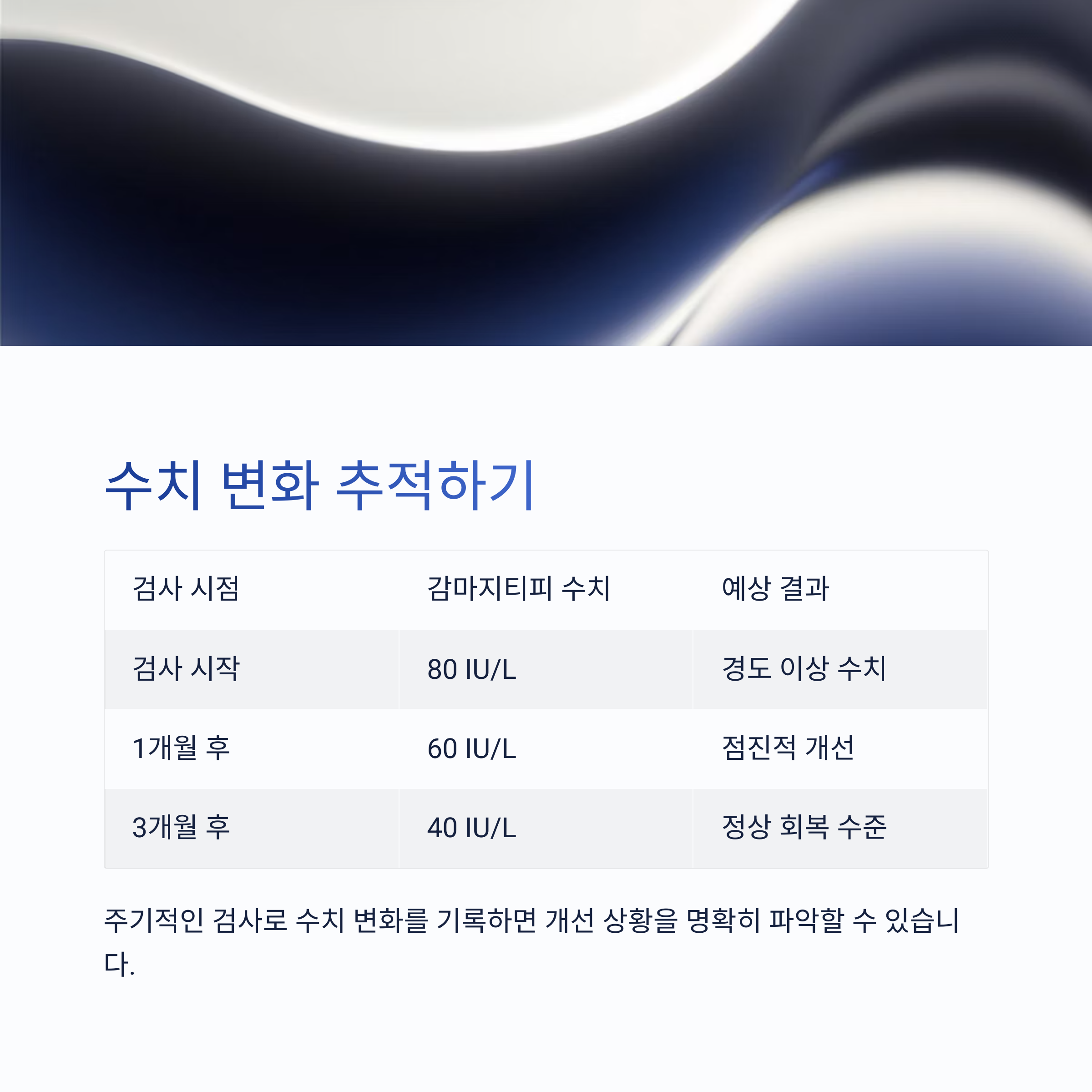 감마지티피 수치는 단순히 일회성 수치가 아니라 지속적 모니터링이 필요한 간 건강의 바로미터입니다.