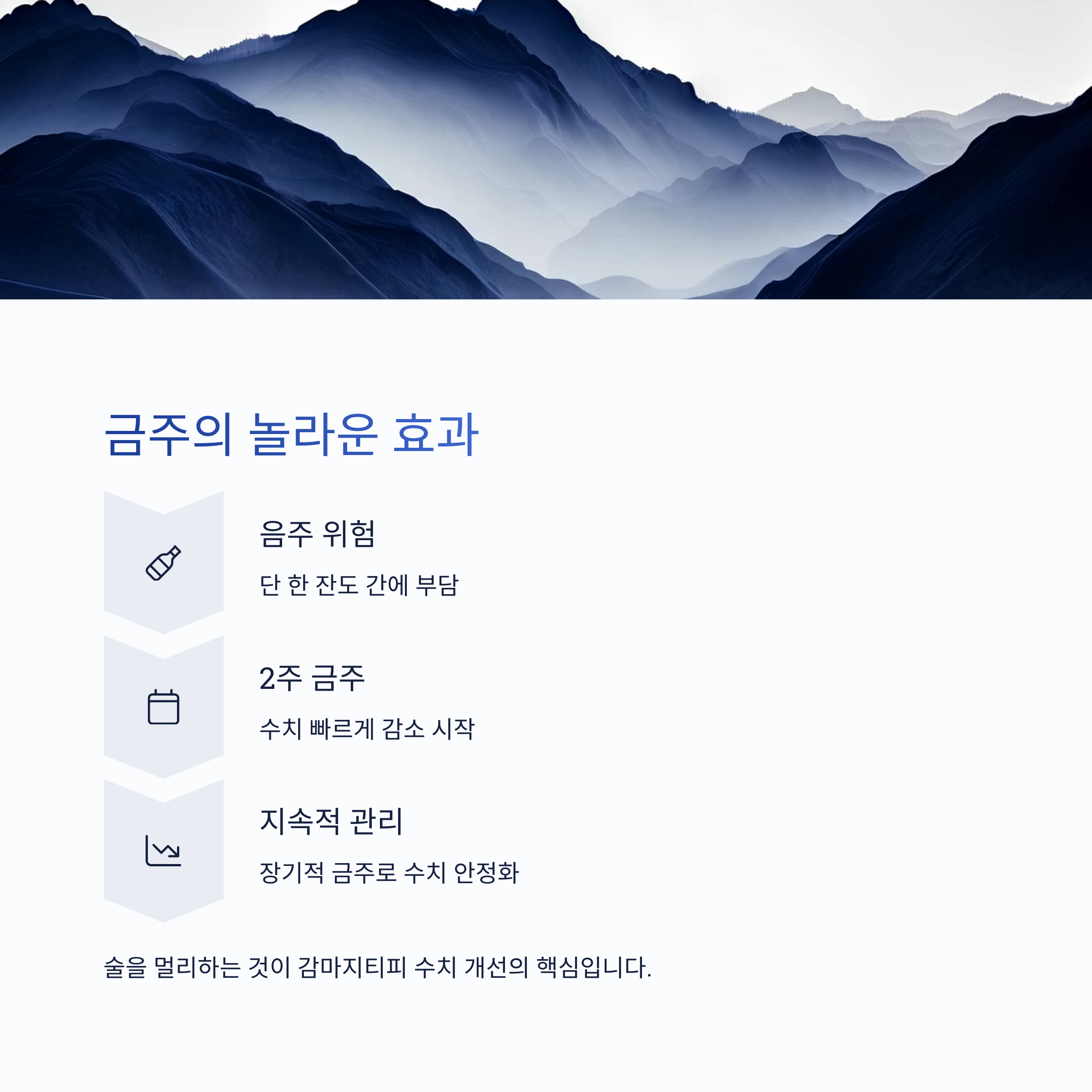 술을 멀리하는 것이 감마지티피 수치 개선의 핵심입니다.