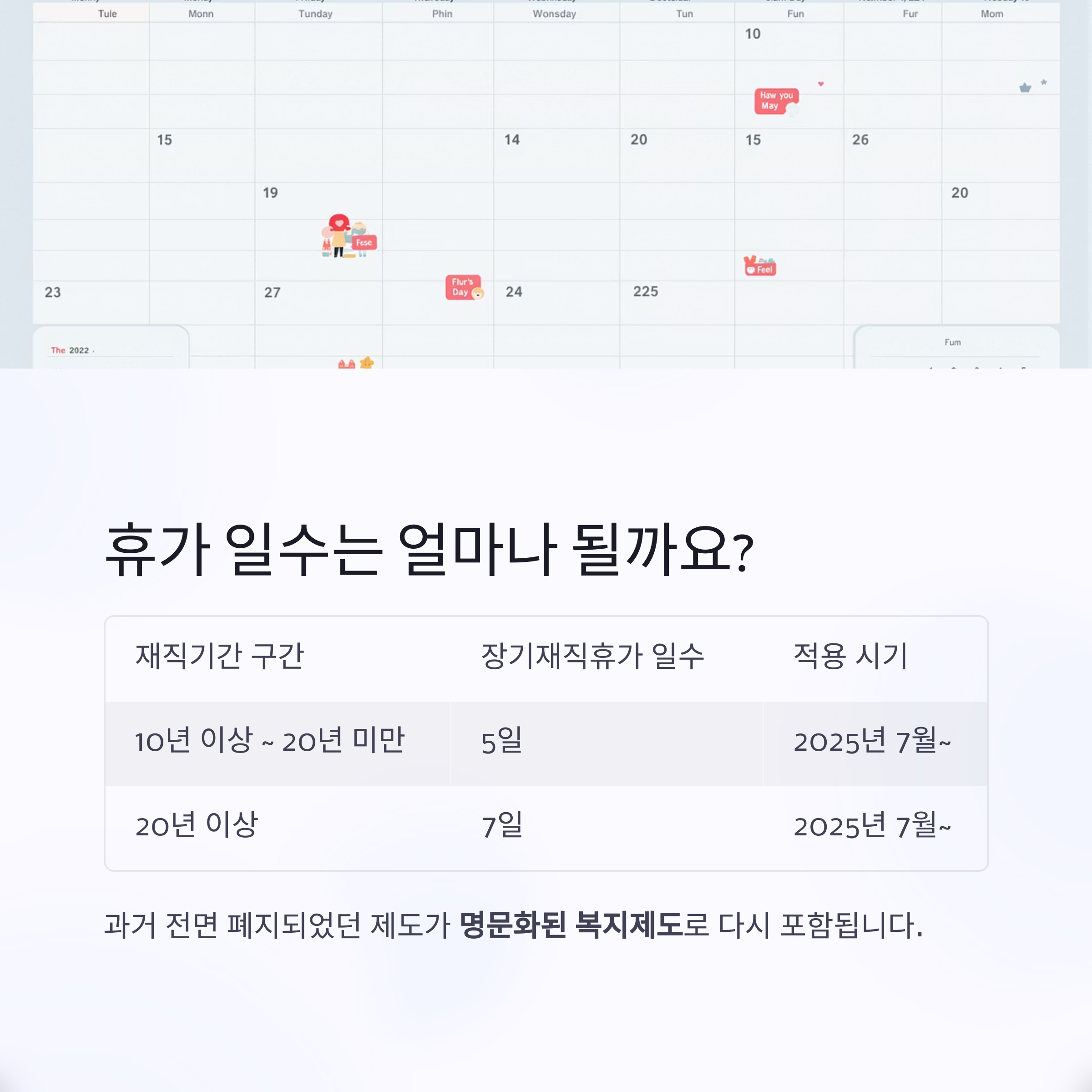 | 10년 이상 ~ 20년 미만 | 5일 | 2025년 7월~ |