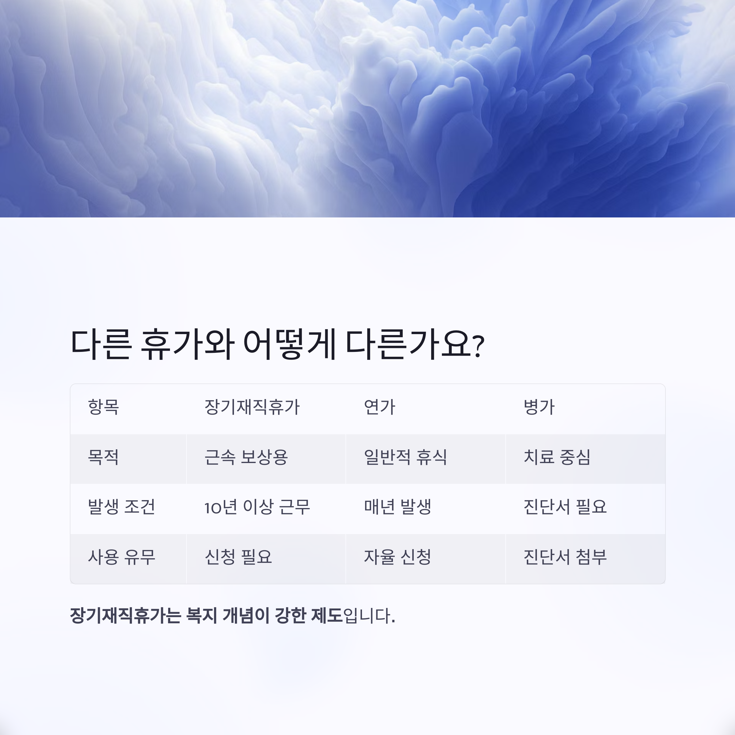 핵심은 장기재직휴가는 복지 개념이 강한 제도이며, 승인을 전제로 한다는 점입니다.
