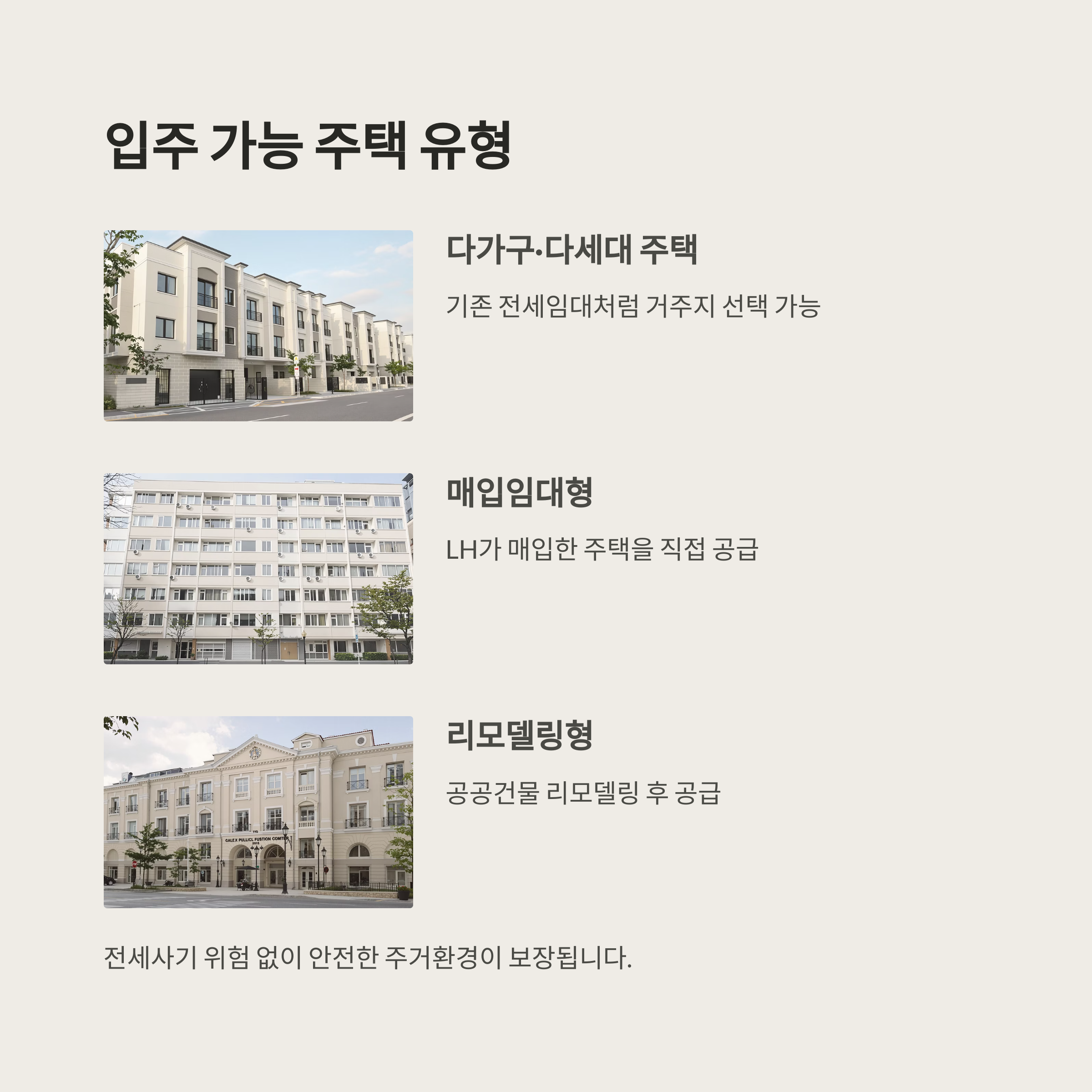 | 다가구·다세대 주택 | 기존 전세임대처럼 거주지 선택 가능 |