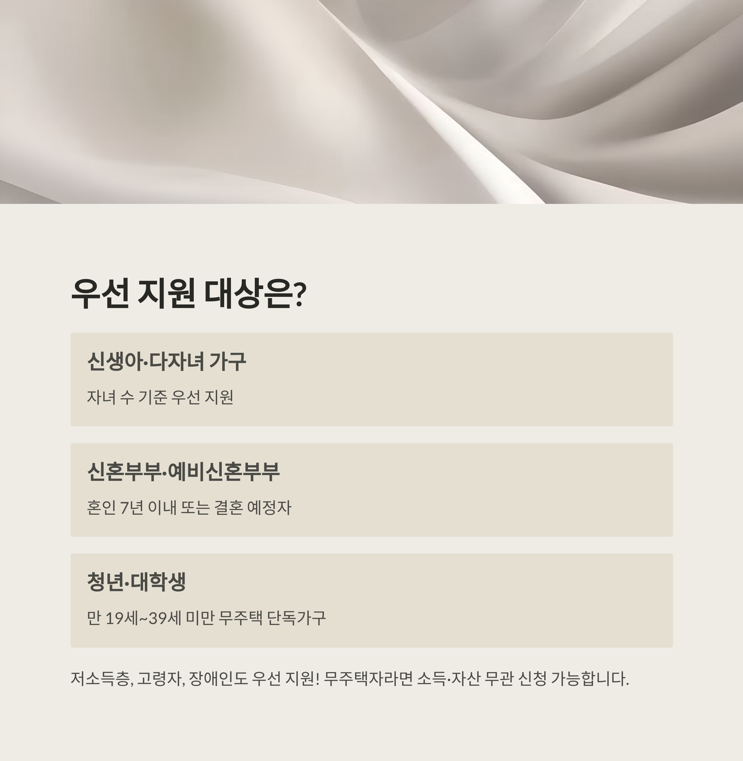 ✅ 소득 제한 없이 무주택자라면 누구나 신청 가능하니, 자격 요건을 확인해보세요.