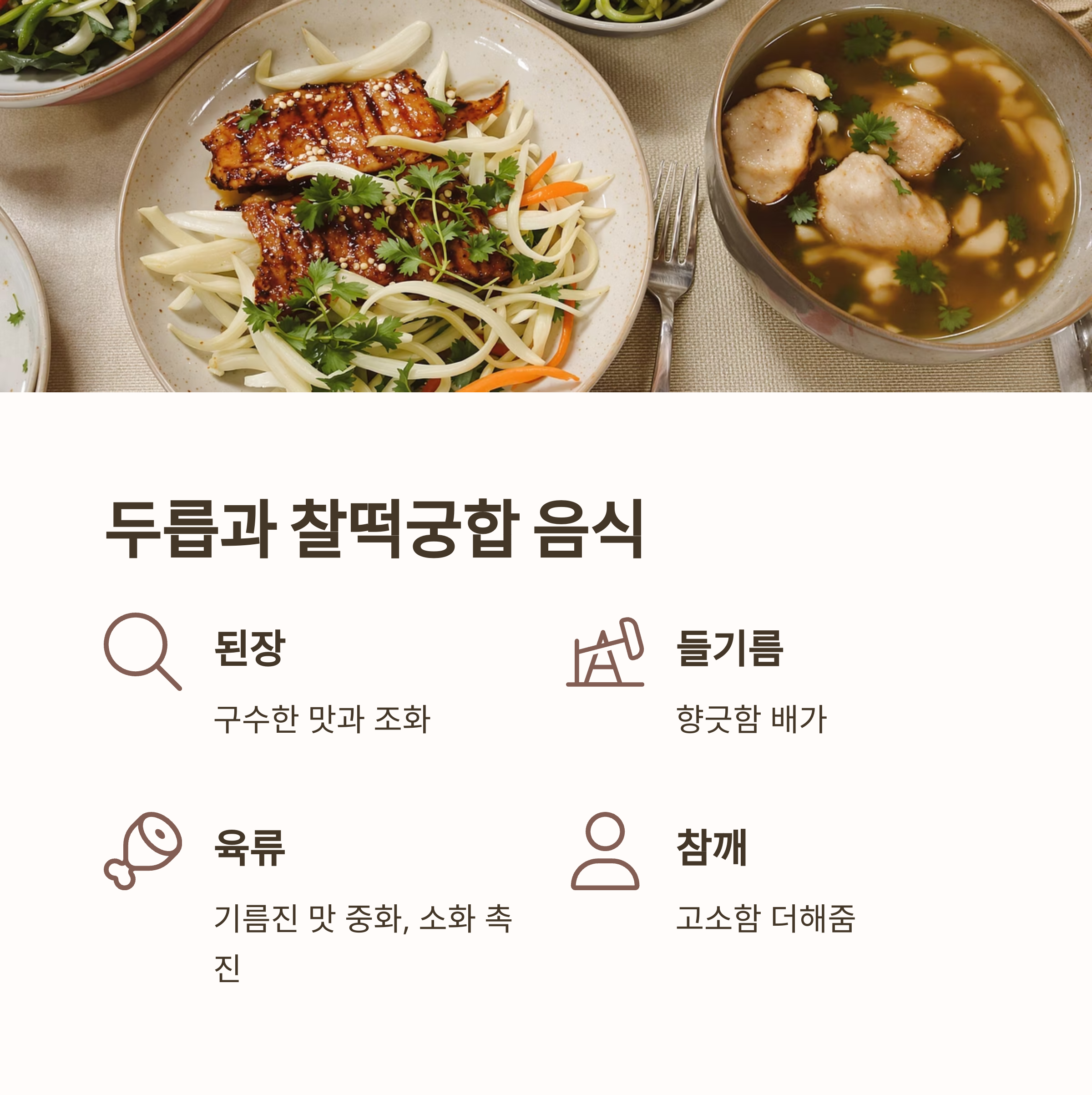 두릅은 된장, 들기름, 참깨와 매우 잘 어울립니다.