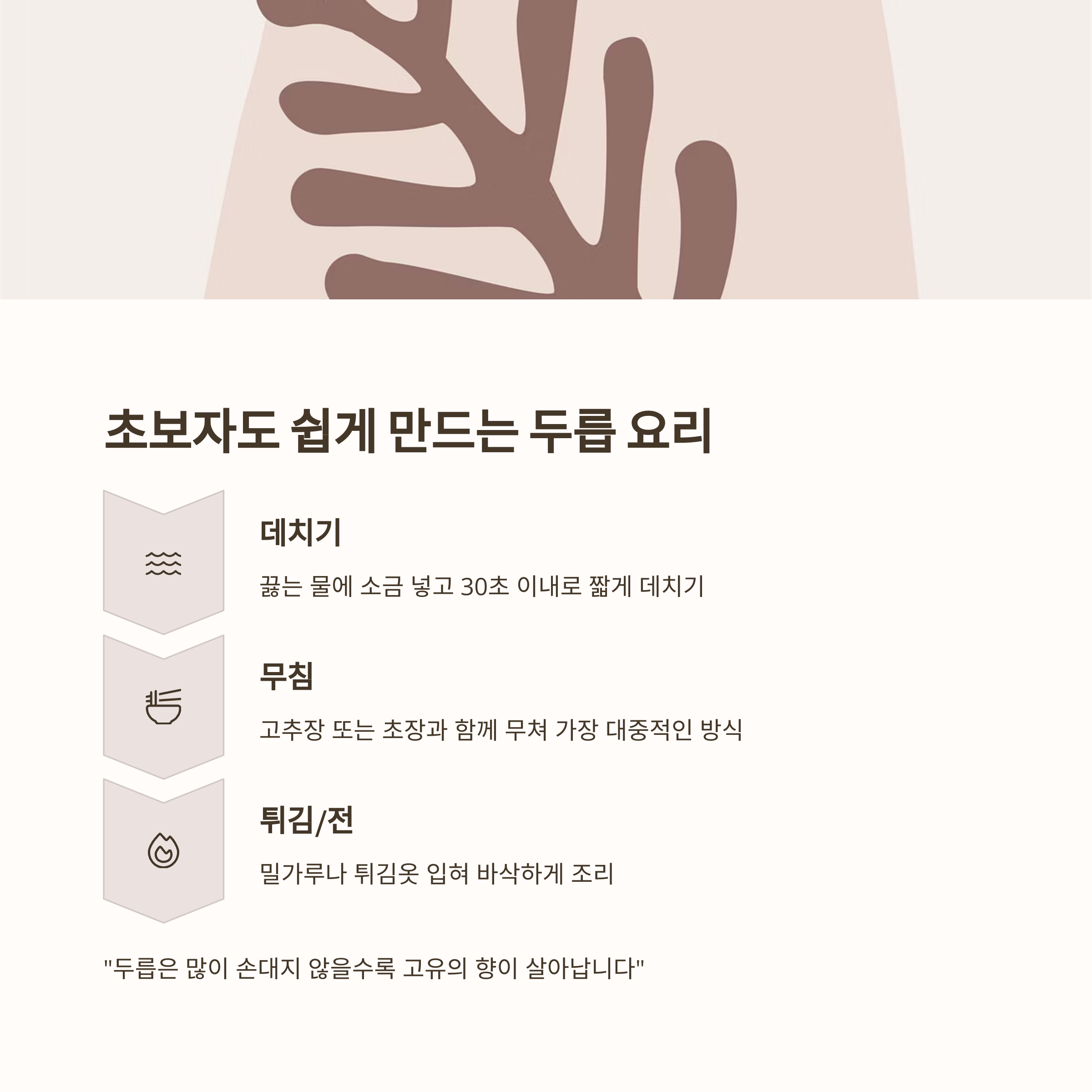 "두릅은 많이 손대지 않을수록 고유의 향이 살아납니다"는 조리 팁도 기억하세요.