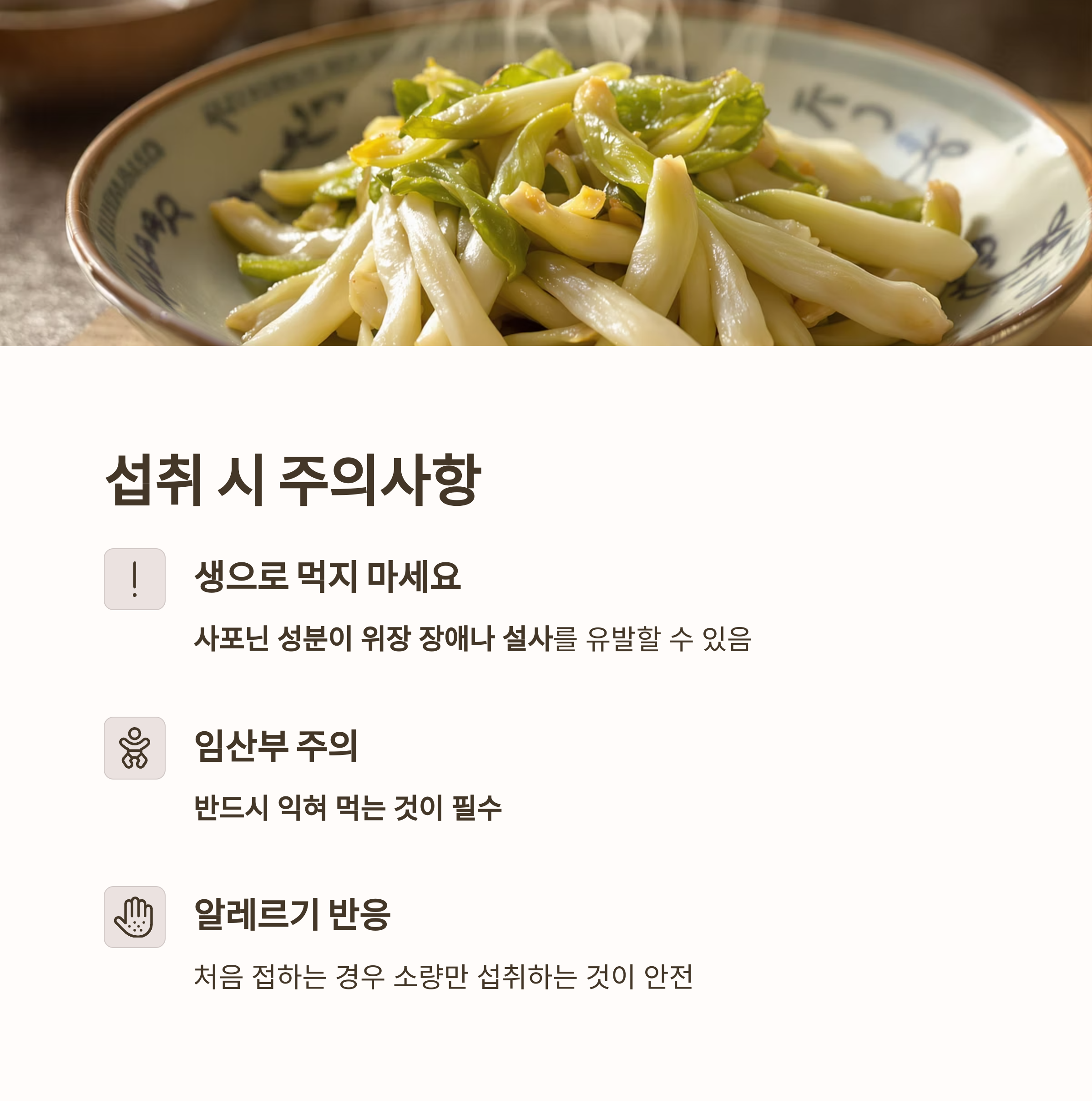특히 임산부나 위장 질환자에게는 "익혀 먹는 것"이 필수 조건입니다.