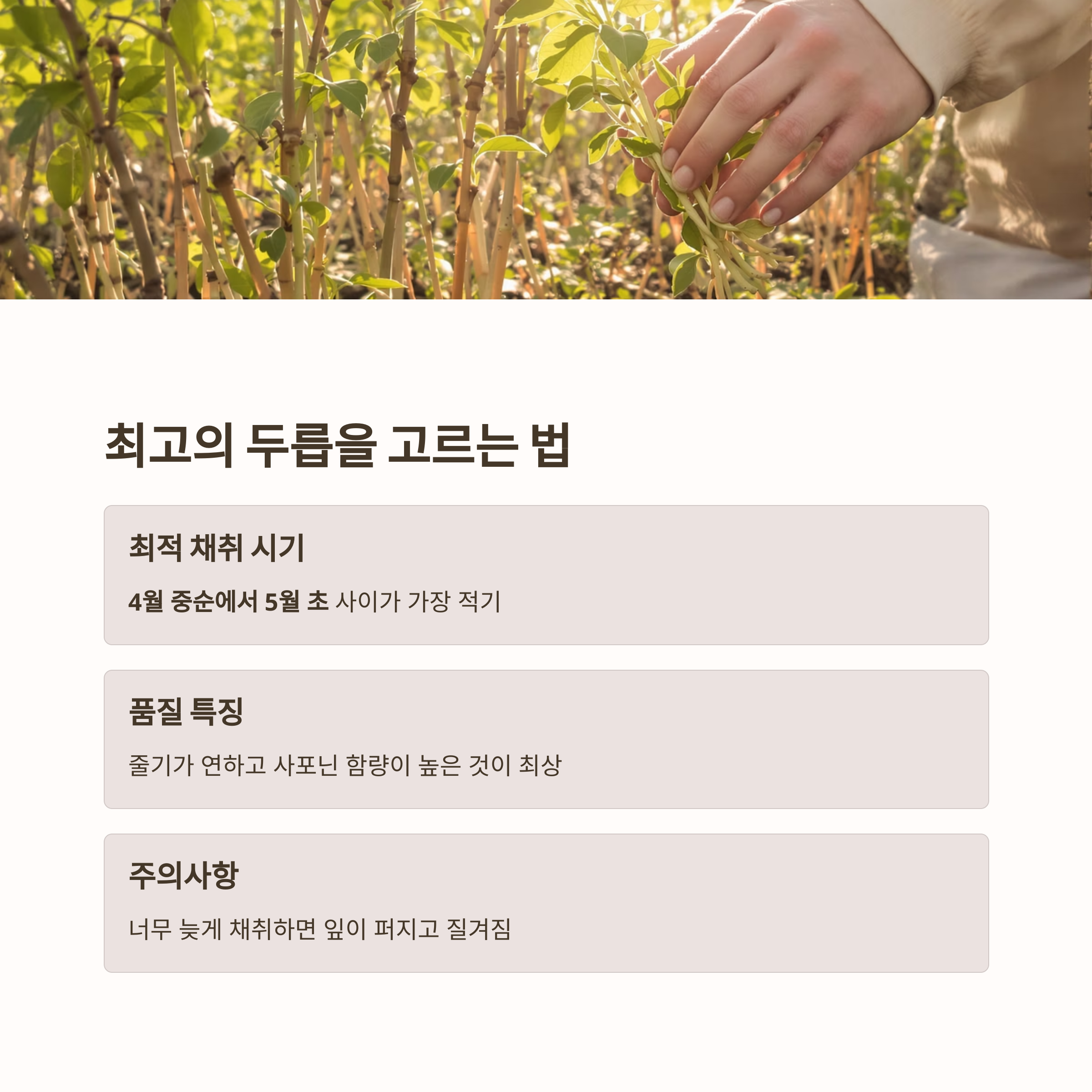| 4월 중순 | 연하고 부드러움 | 생으로 먹기 X |