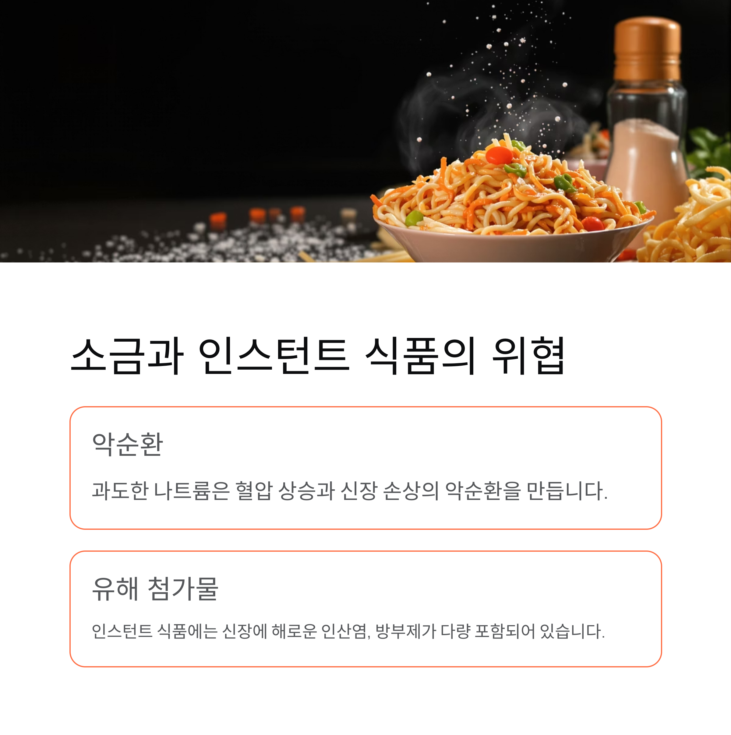 과도한 나트륨은 혈압을 상승시키고, 고혈압은 다시 신장을 손상시키는 악순환을 만듭니다.