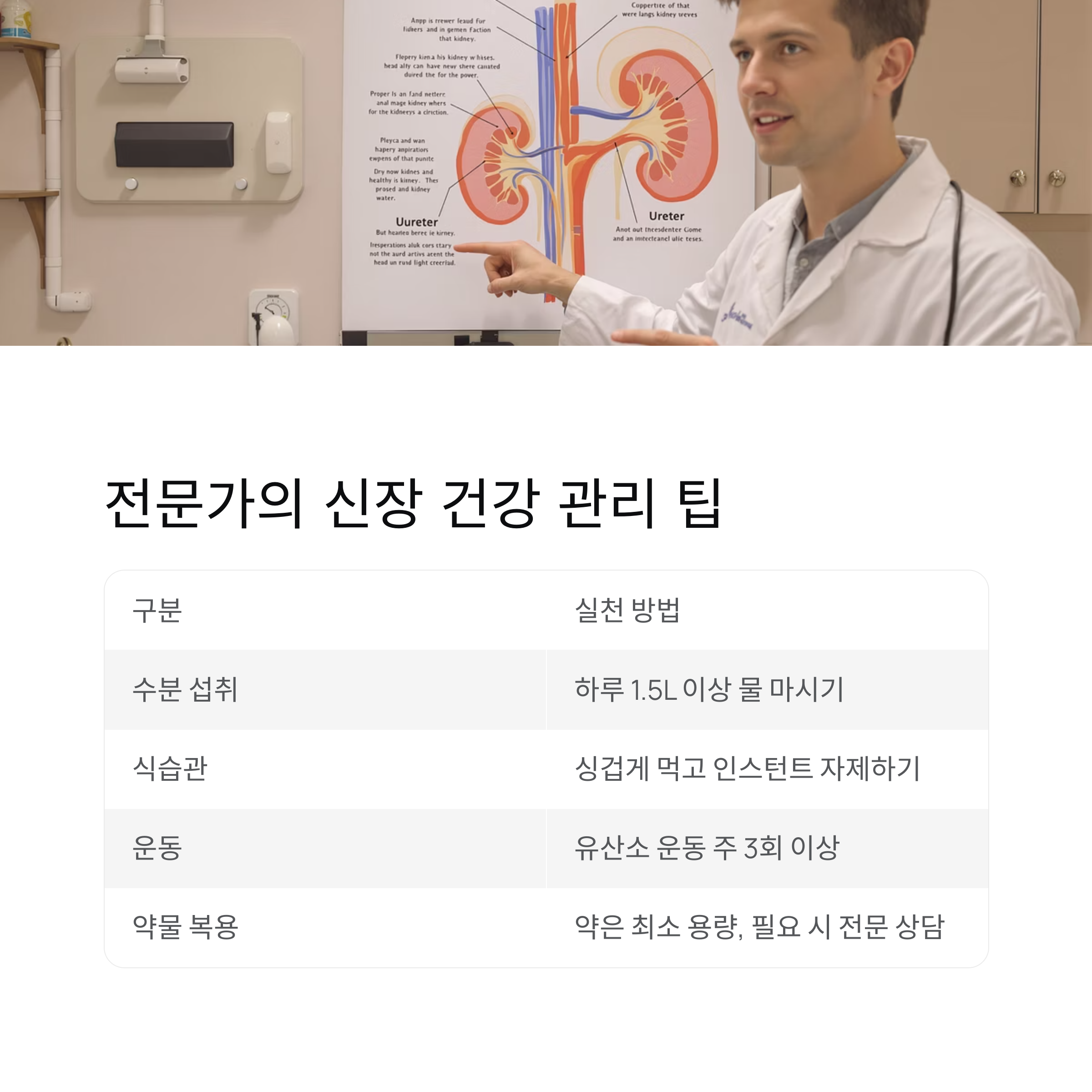 이제부터라도 신장 건강을 위해 하루 한 잔 더 물을 마시고, 식단을 점검하며, 약 복용에 신중을 기하세요.