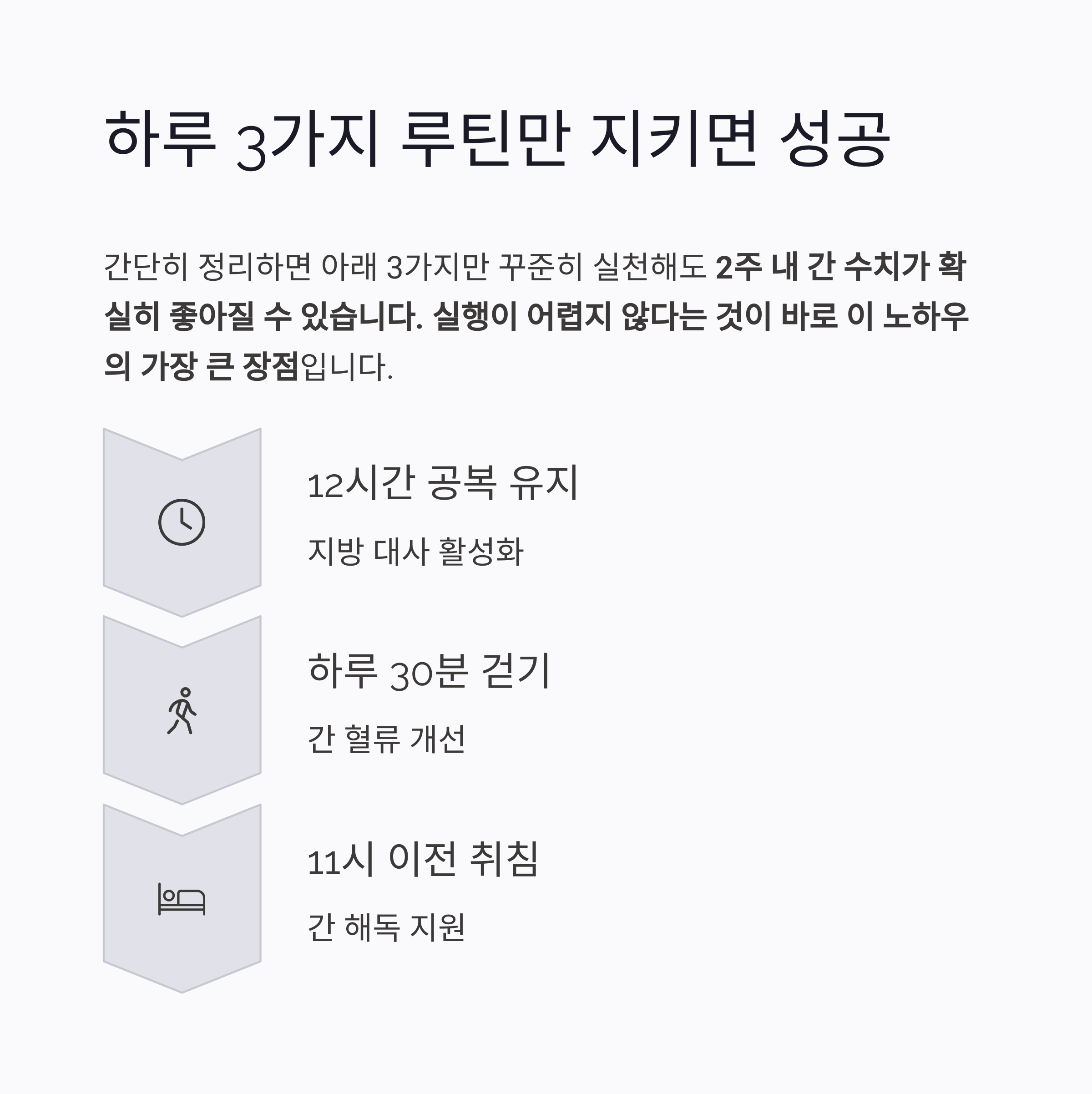 | 공복 유지 | 12시간 | 지방 대사 활성화 |