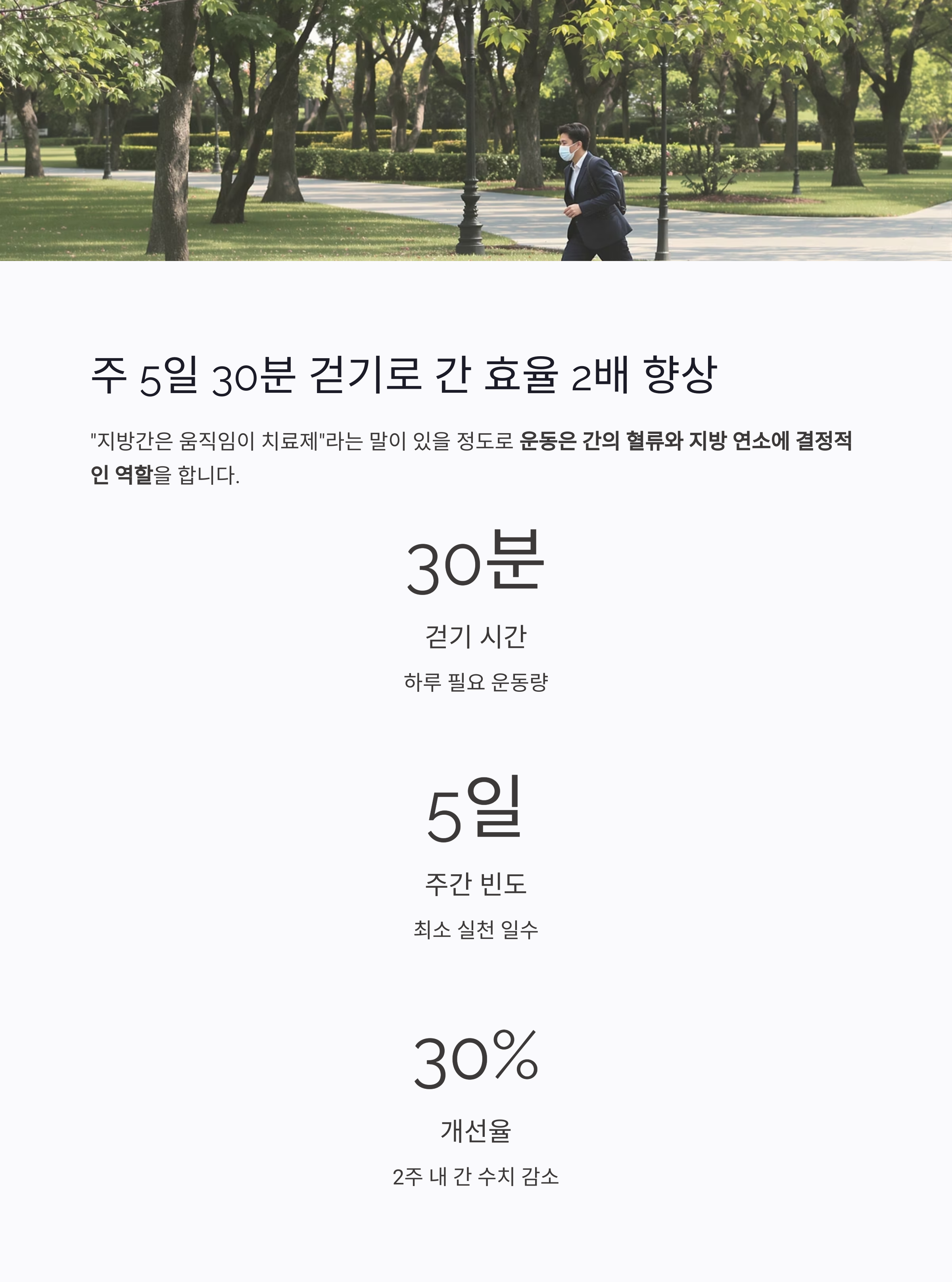 주 5일 걷기, 단 30분으로 간 효율 2배 향상