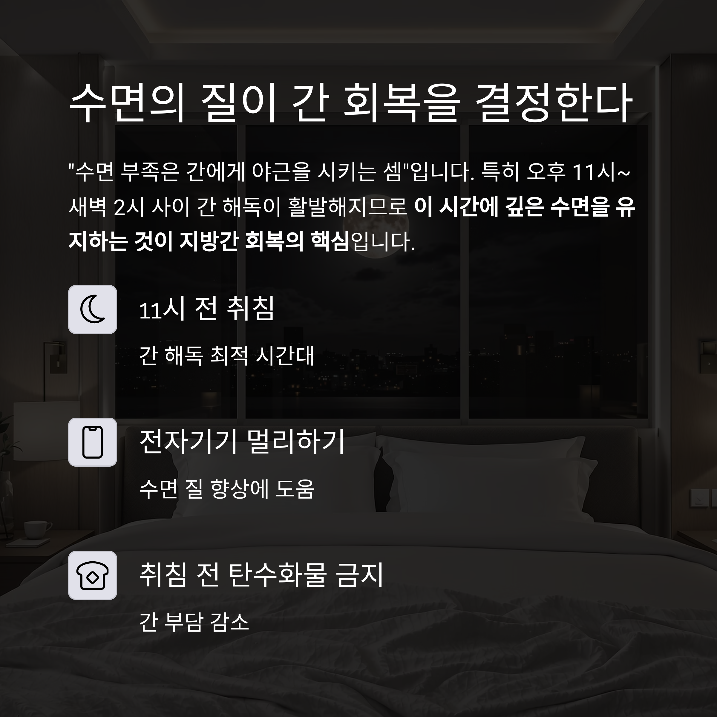 이 시간에 깊은 수면을 유지하는 것이 지방간 회복의 핵심입니다.