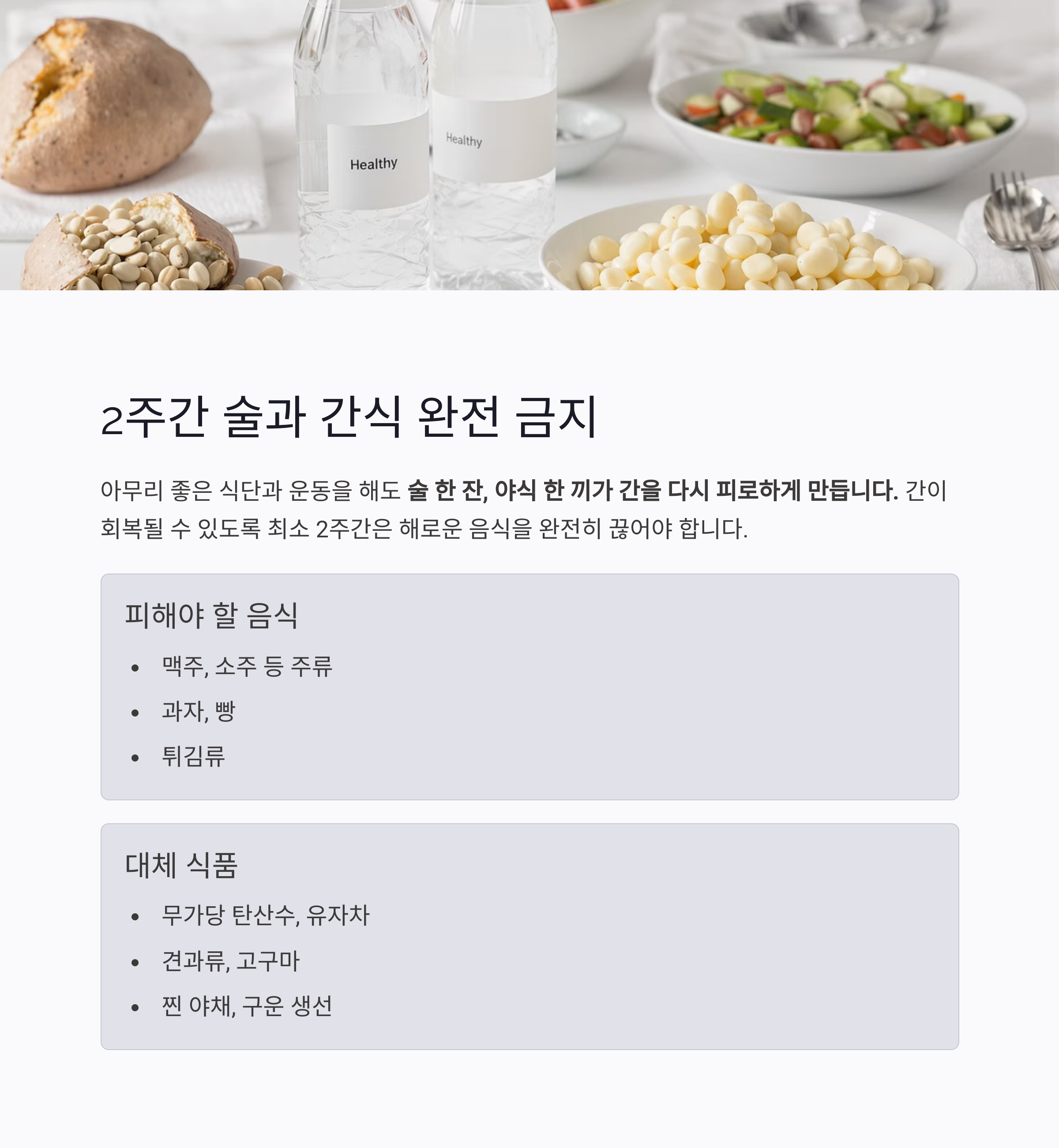 간이 회복될 수 있도록 최소 2주간은 아래 음식들을 완전히 끊어야 합니다.