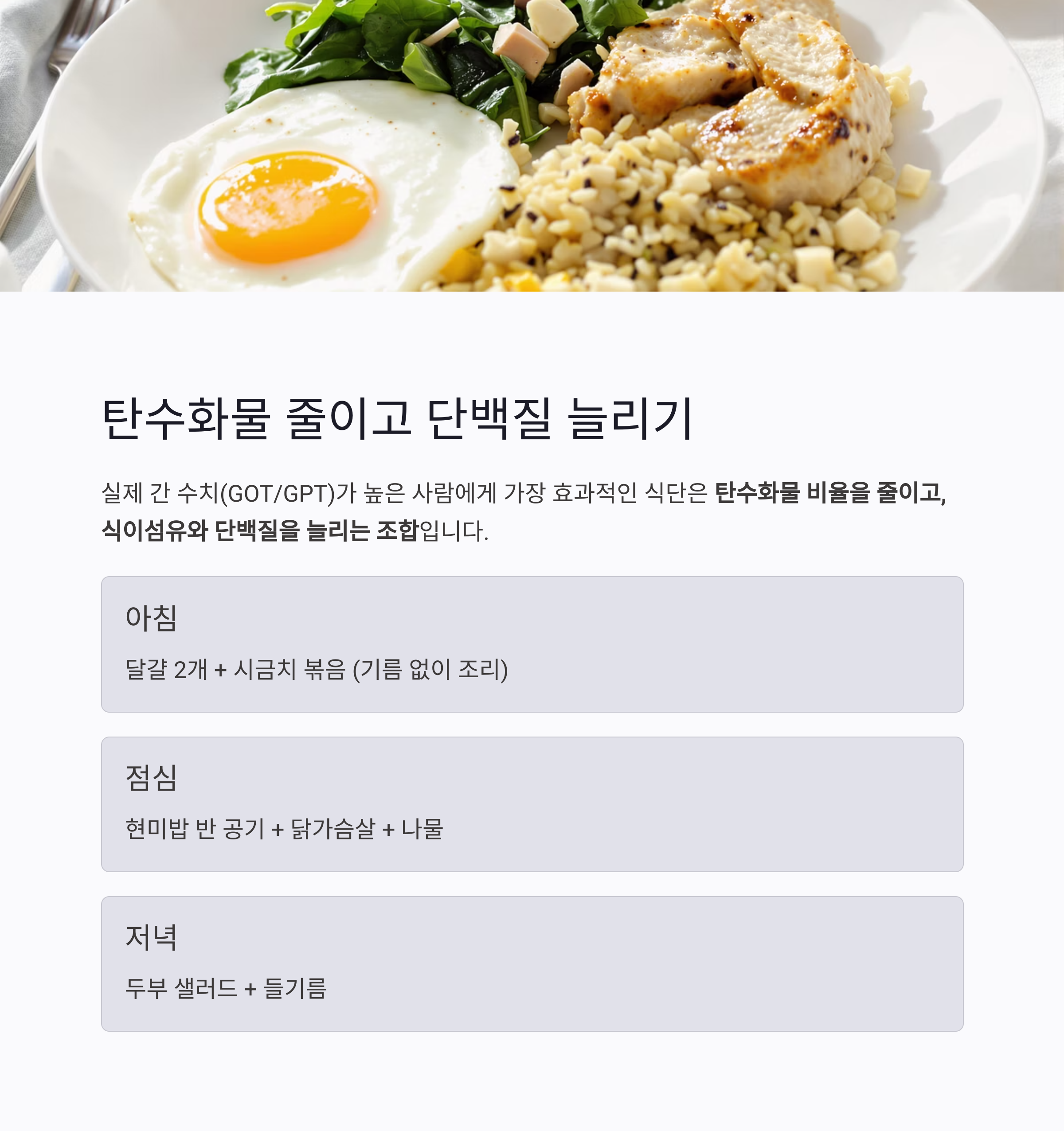 실제 간 수치(GOT/GPT)가 높은 사람에게 가장 효과적인 식단은